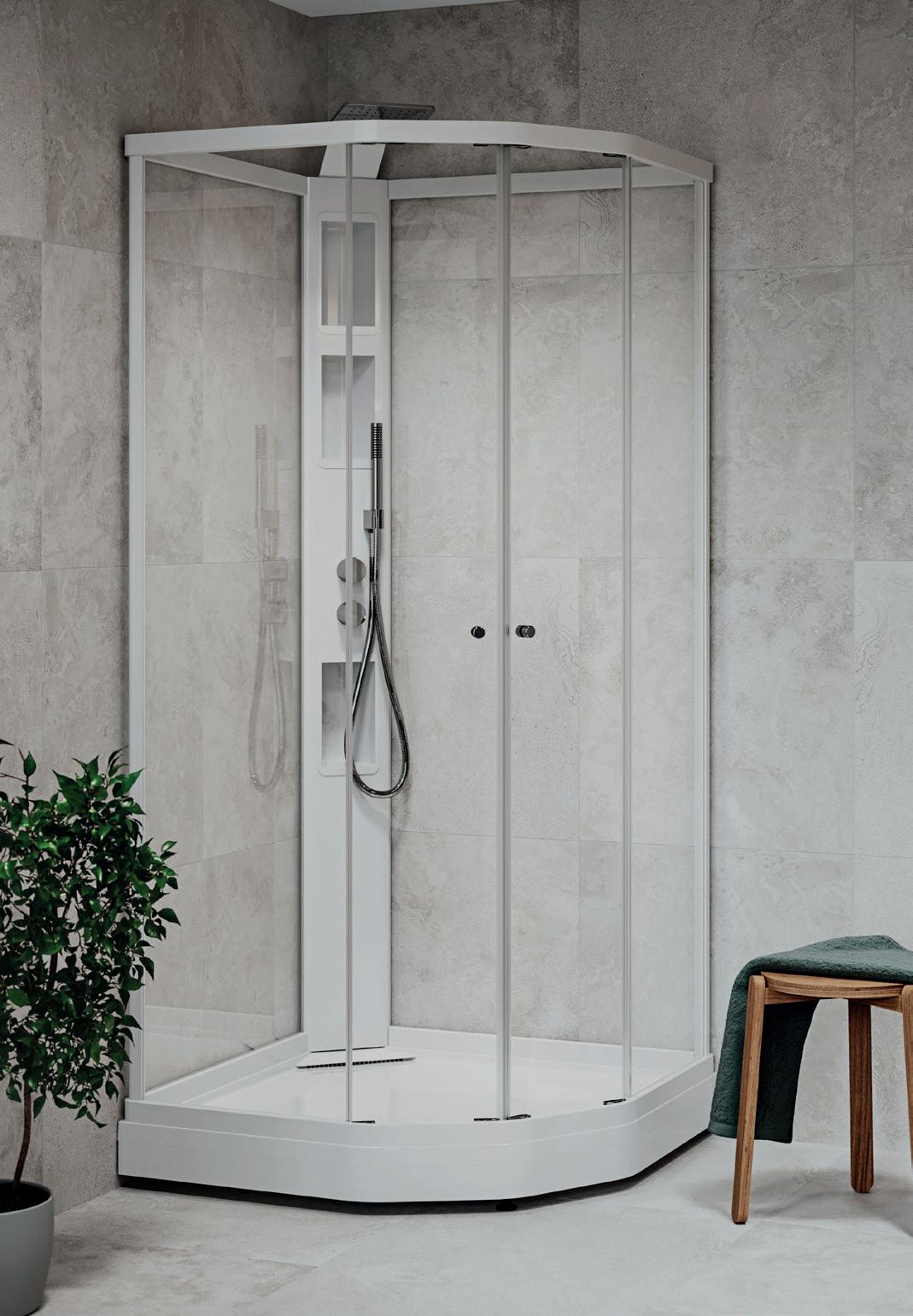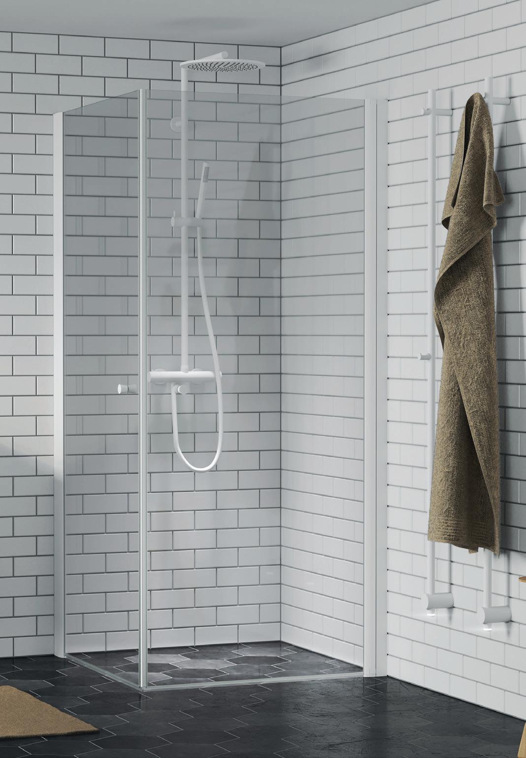 • Profiler langs veggen hjelper til med holde vannet inne i dusjen