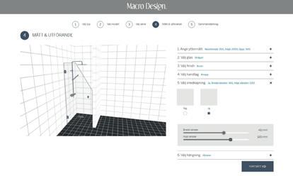 • Velg mellom dør/dør (Hjørne) eller fast vegg/dør (Swing)
