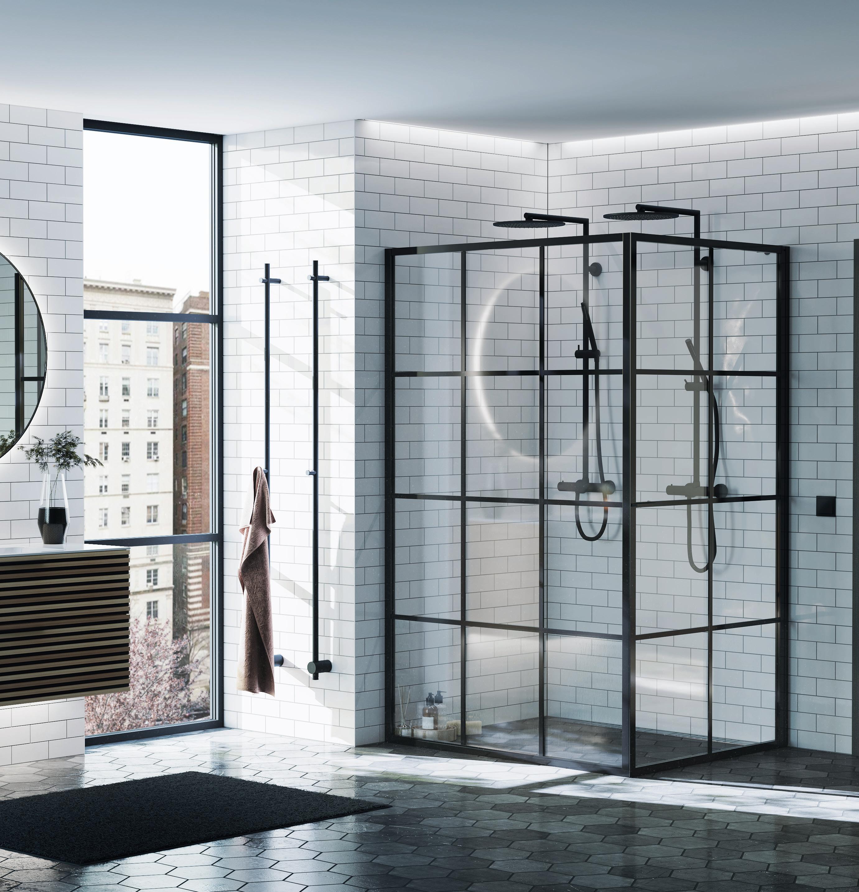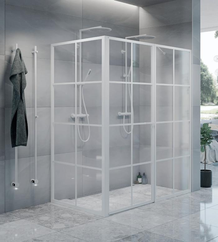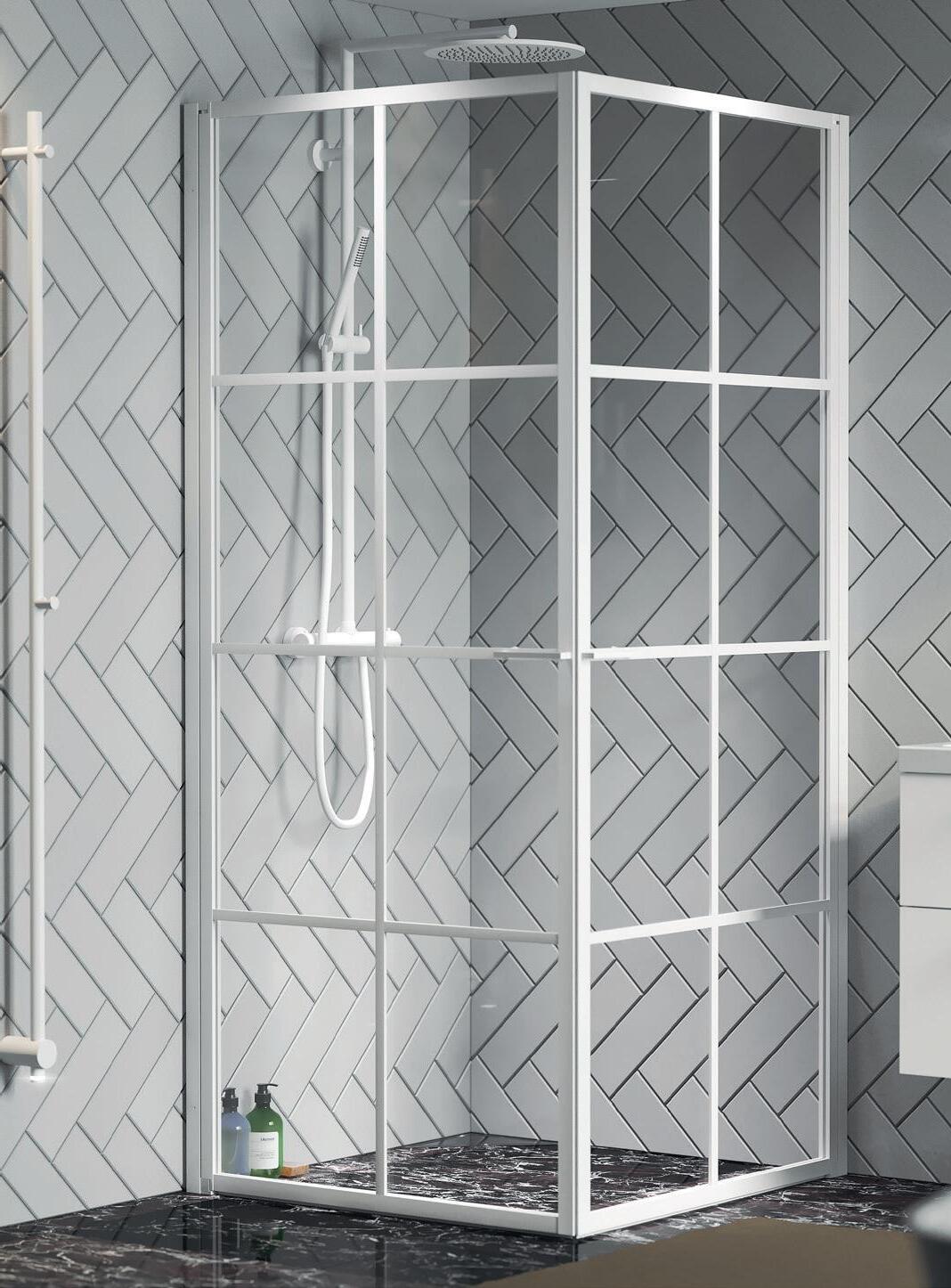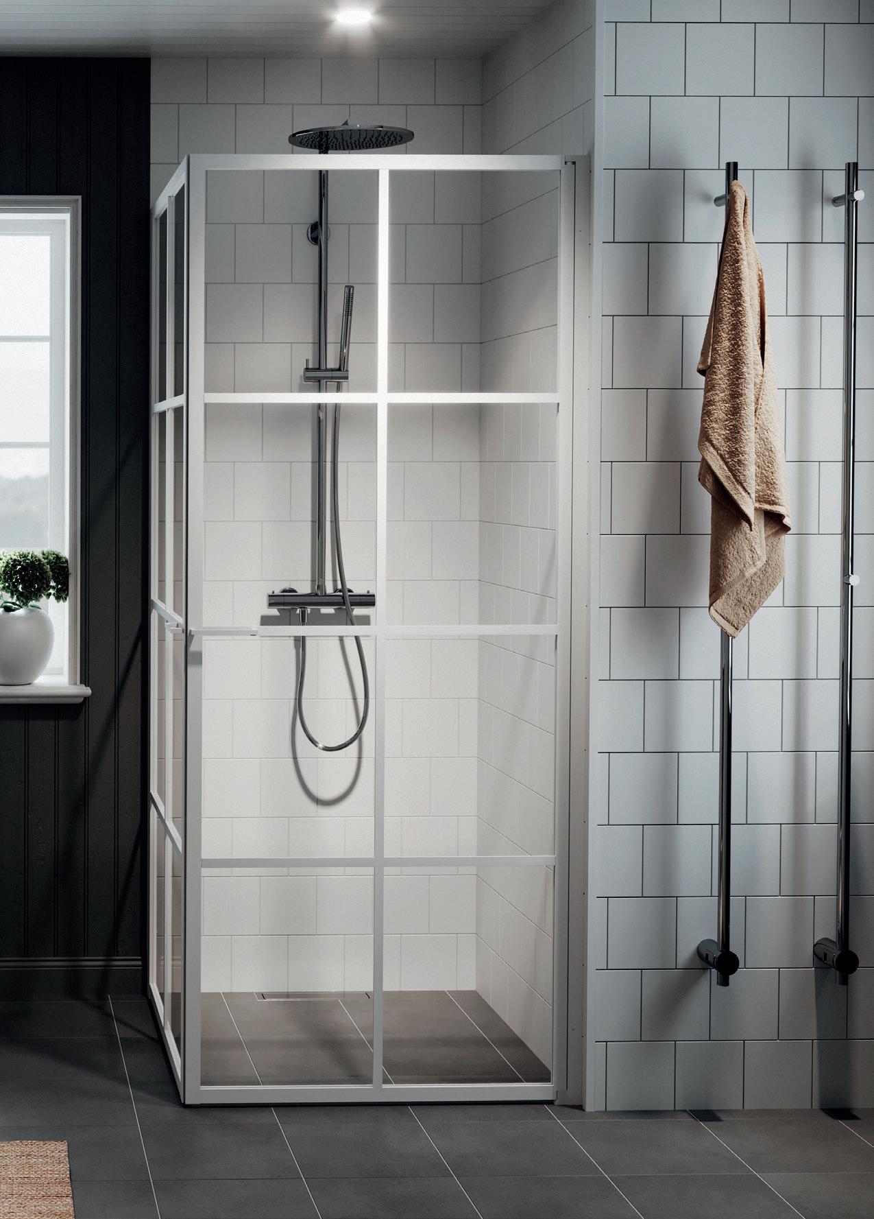 En dusj for den trendbevisste som setter pris på en moderne og industriell design med spennende og nyskapende detaljer. Velg mellom dramatisk matt svart eller sobert hvitt. En hvit dusj fungerer perfekt i det romantiske eller klassiske baderommet der huset har sprosser i vinduene.