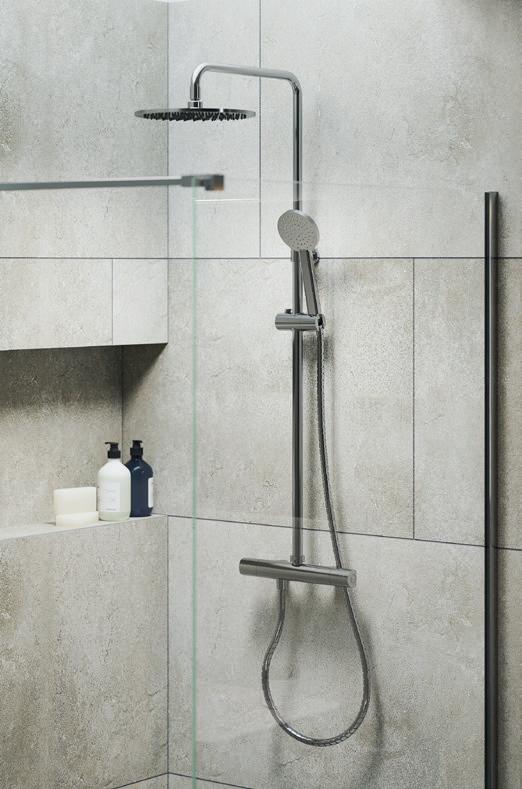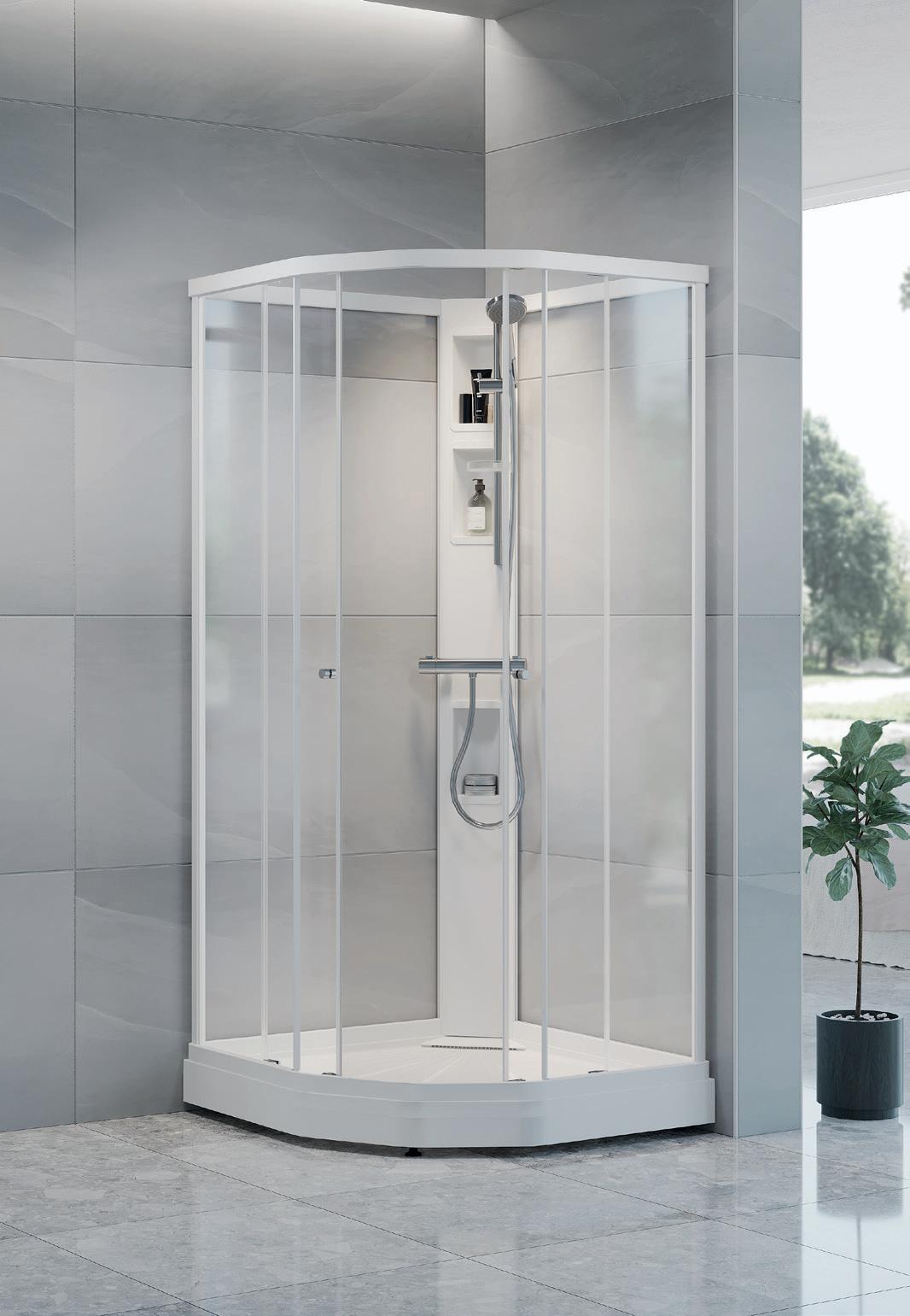 • Rammer inn og gjør at det ikke spruter vann ut av dusjrommet