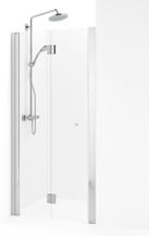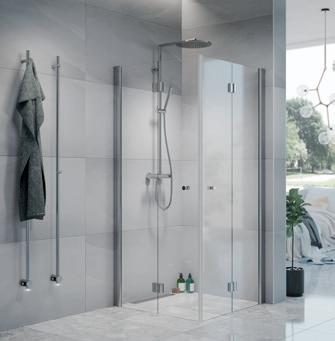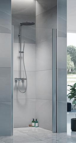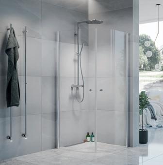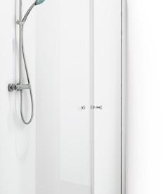• Hvis du har et lite baderom med et toalett og et servantskap inntil dusjen, kan du velge en vik-modell der døren kan felles inn på midten.