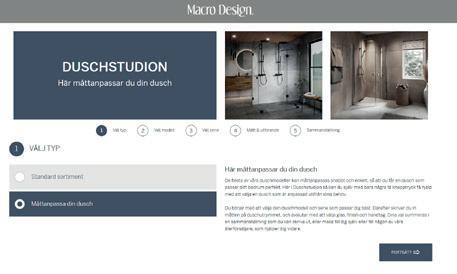 Macro Design bruker kun herdet sikkerhetsglass i dusjløsningene. Så hvis glasset mot formodning skulle gå i stykker, vil det knuse i bitte små og relativt ufarlige glassbiter.