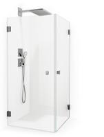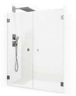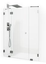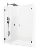 • Hvis du har et lite baderom med et toalett og et servantskap inntil dusjen, kan du velge en modell der døren kan felles inn på midten.