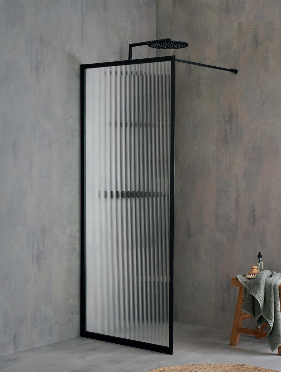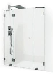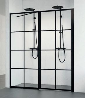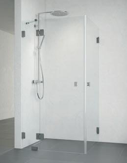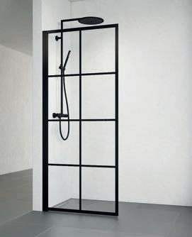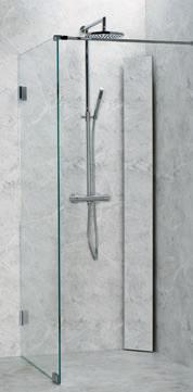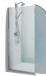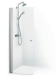 En dusj som består av en dør og en fast vegg, som gjør den perfekt hvis badet for eksempel har en servantskap eller vaskemaskin som er plassert rett ved siden av dusjen.