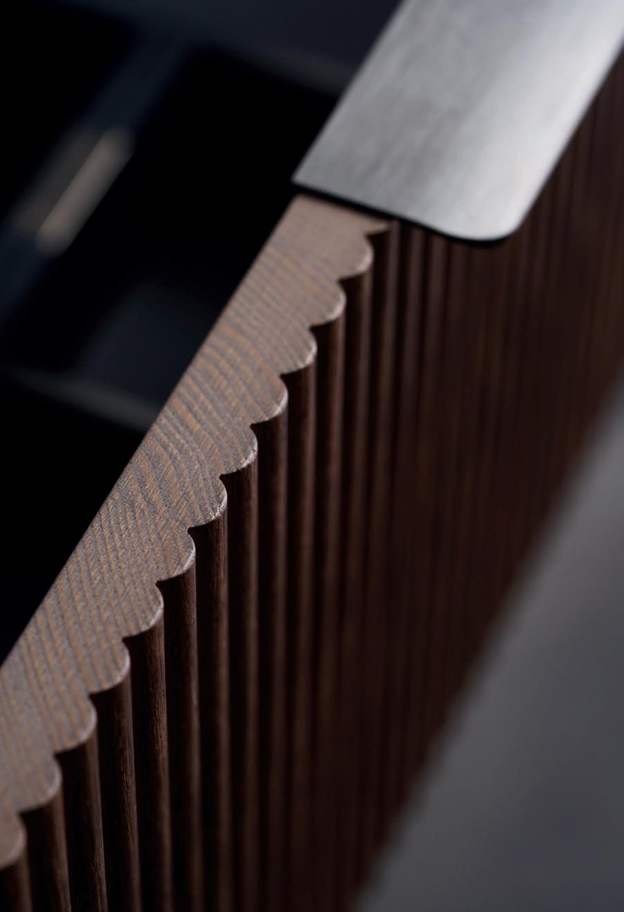 Skandinavisk natur og japansk enkelhet kommer sammen i den nye Crown Lineskuffefronten. De ubrutte, loddrette linjene av massivt tre minner om en rolig skog som strekker seg mot solen. Fås i lys eik, svart eik og brun ask.