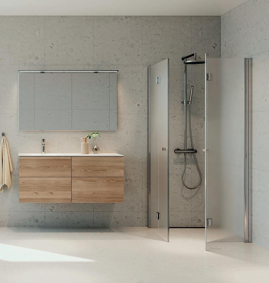 inn glassdørene når du ikke bruker dusjen, for å skape mer plass på badet.