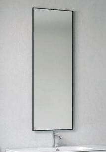 Avskalad skönhet i ny version. Kvadratisk planspegel med svart ram och svart T-belysning för att matcha eller bryta av mot andra detaljer i badrummet.