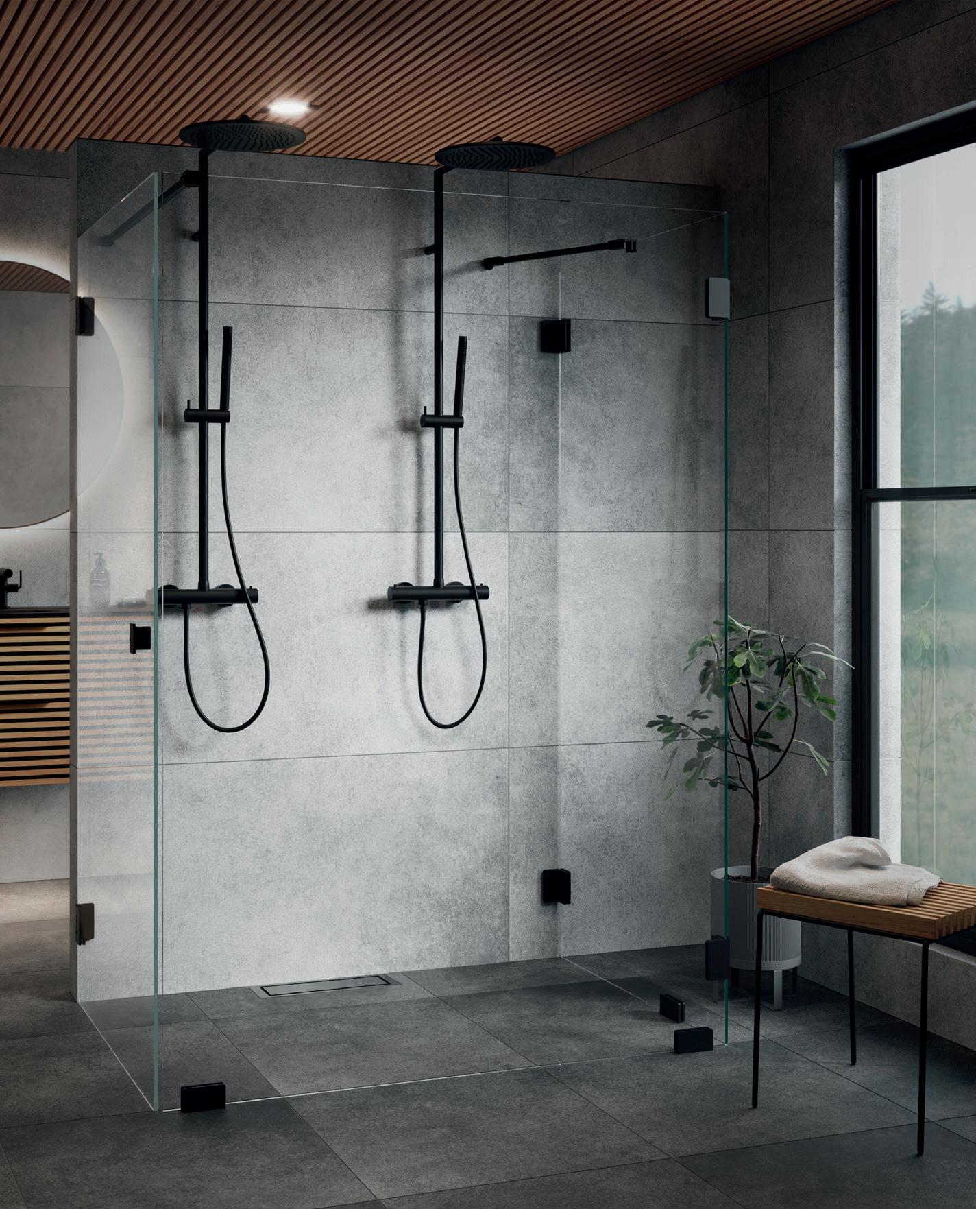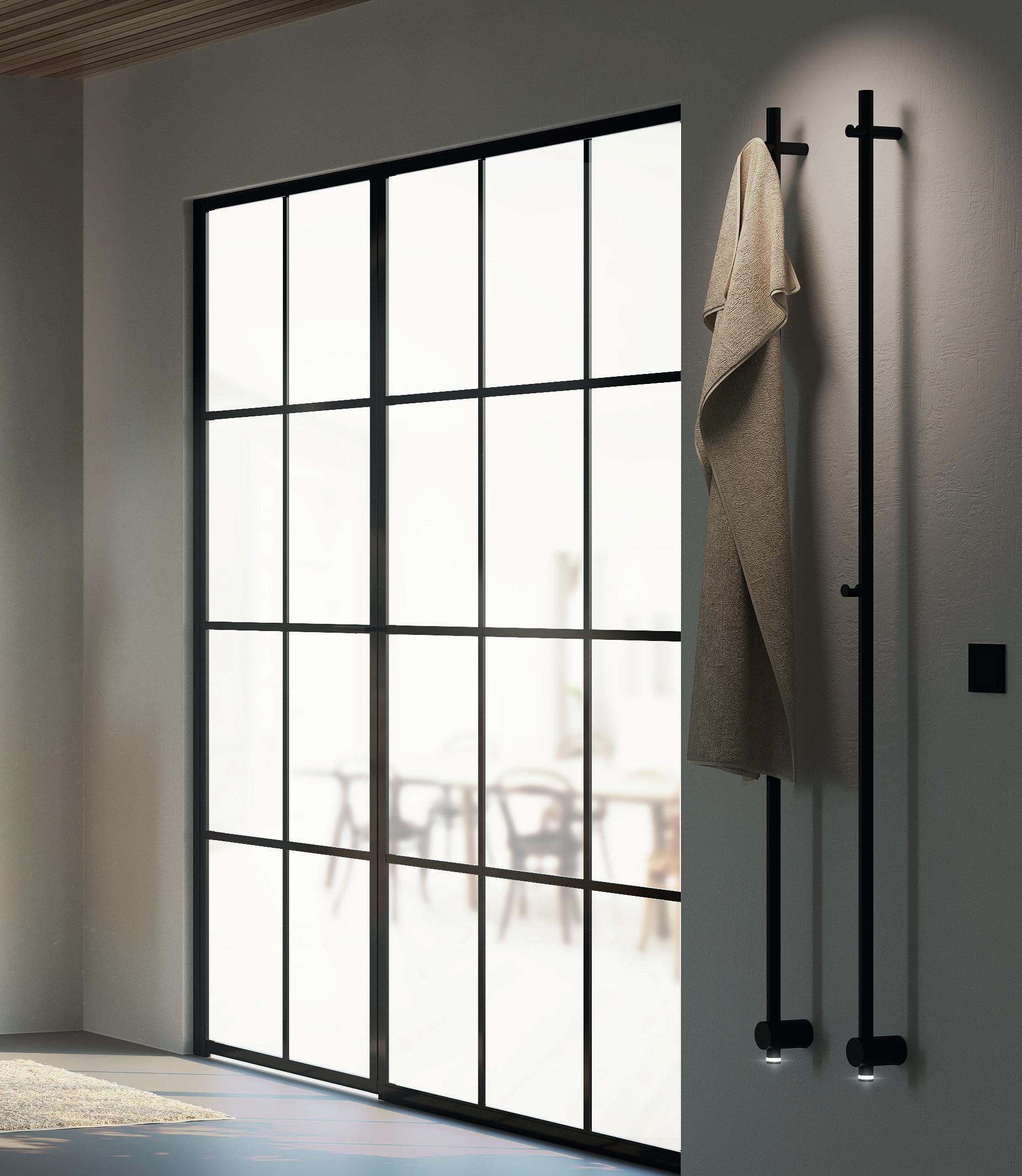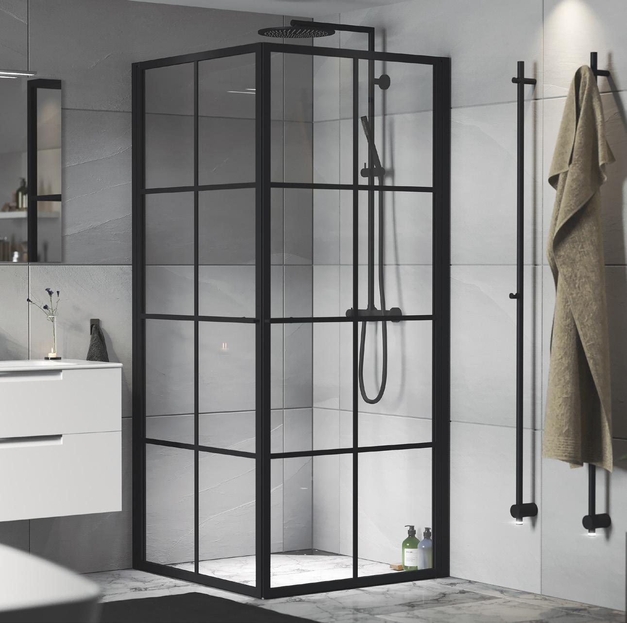 Vår modell med utenpåliggende, avtakbare sprosser i svart aluminium gir en industriell og moderne følelse. En modell for deg som virkelig vil vise frem din dusj som en innredningdetalj.