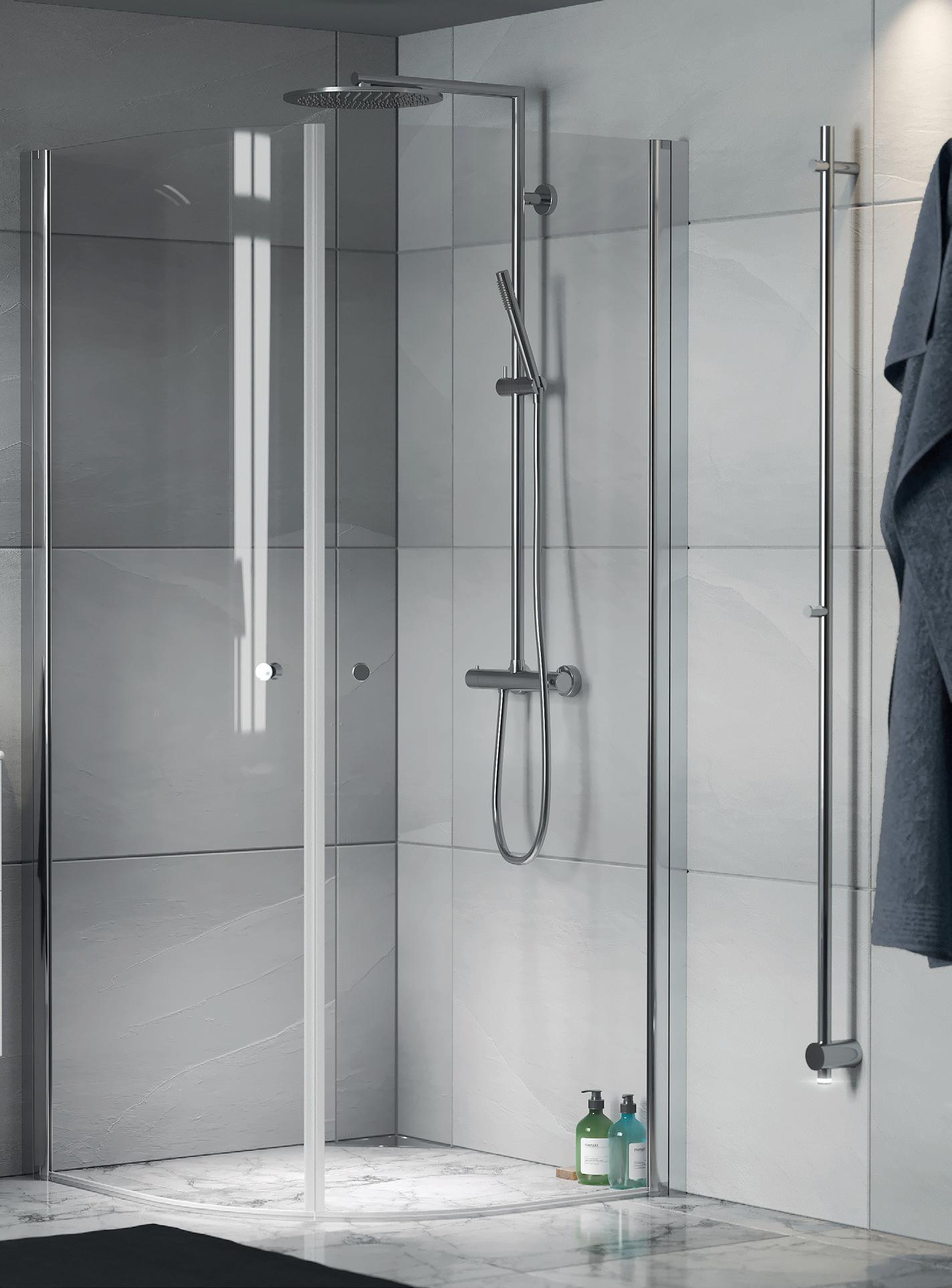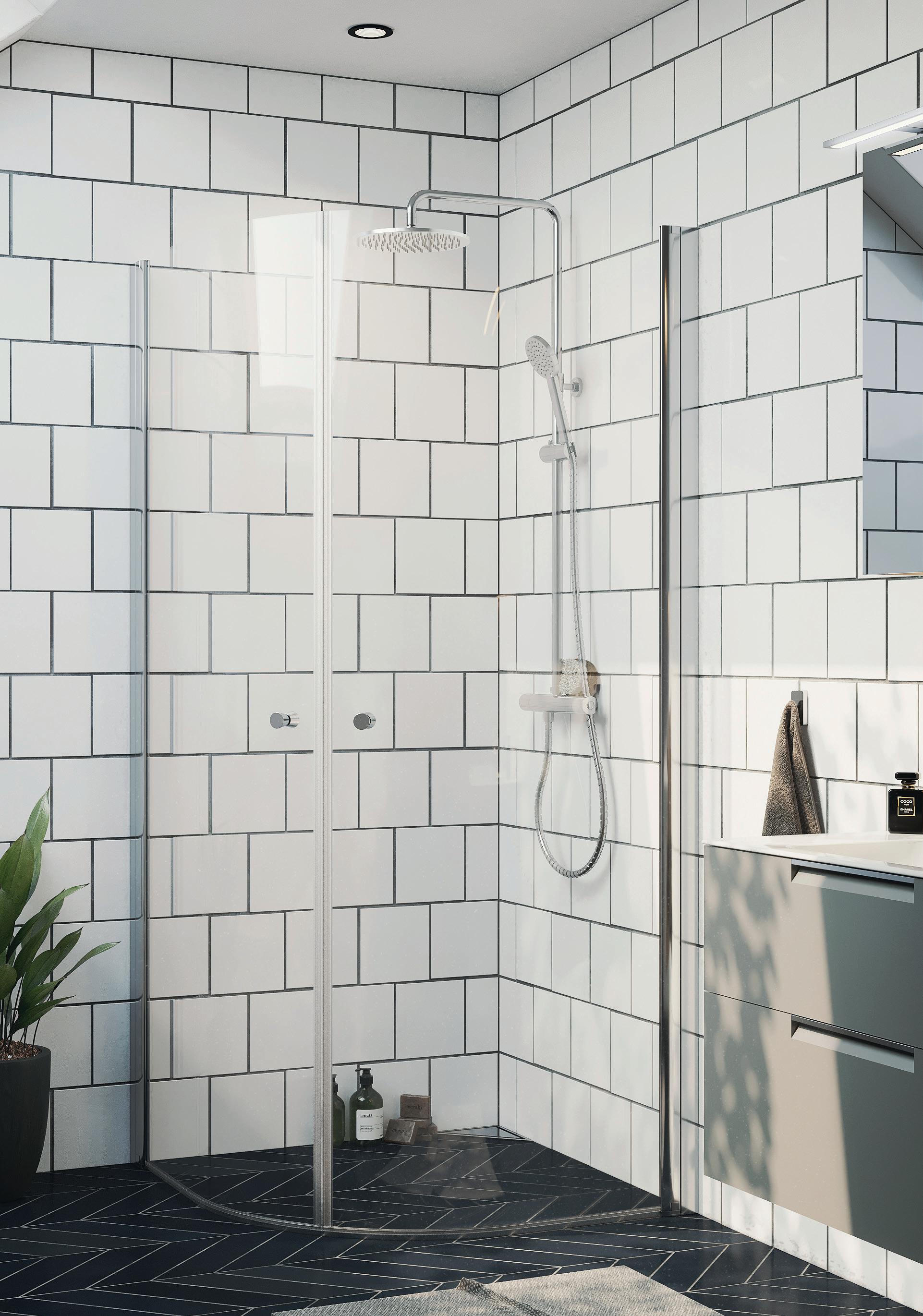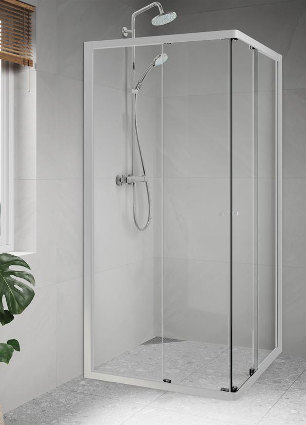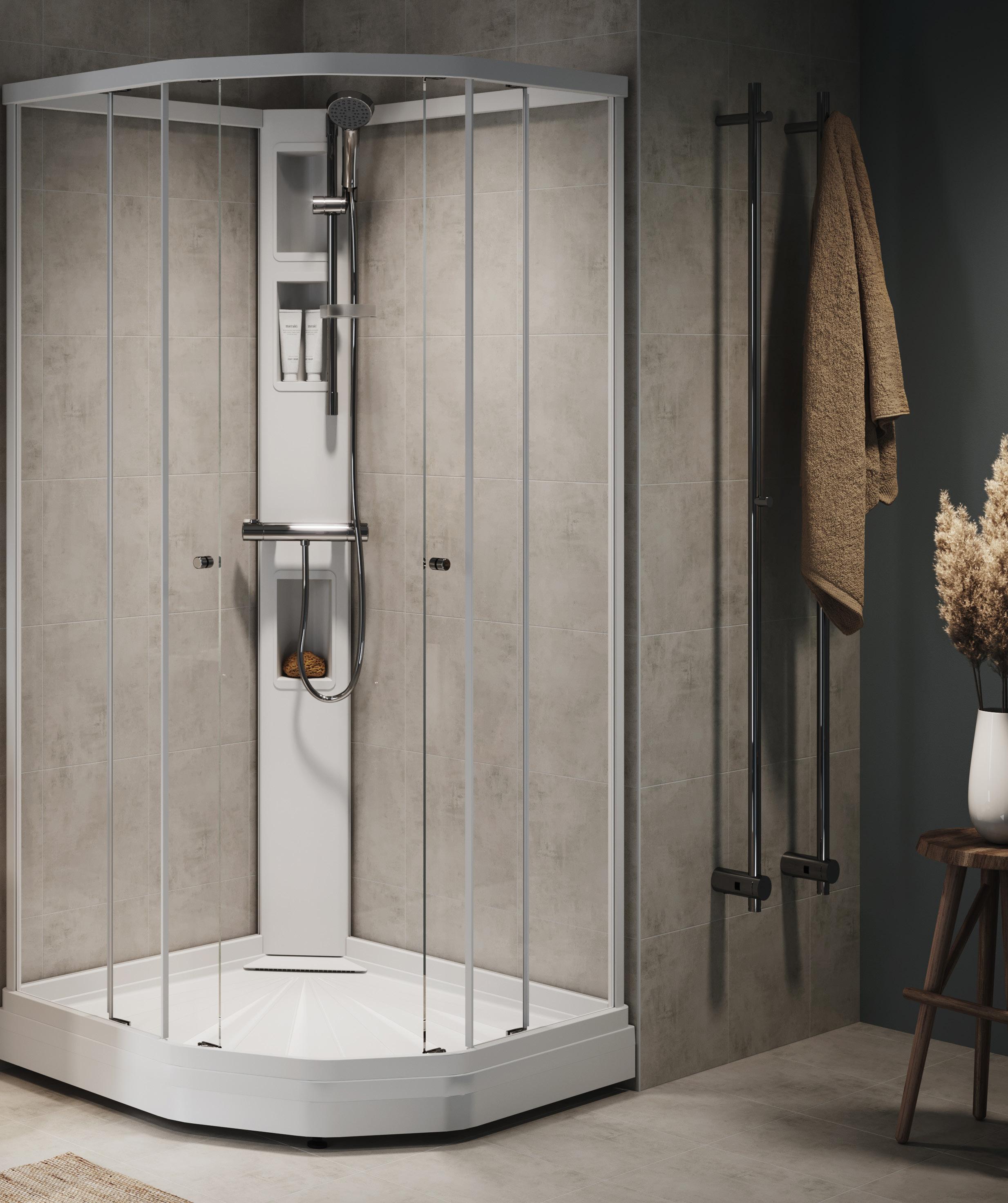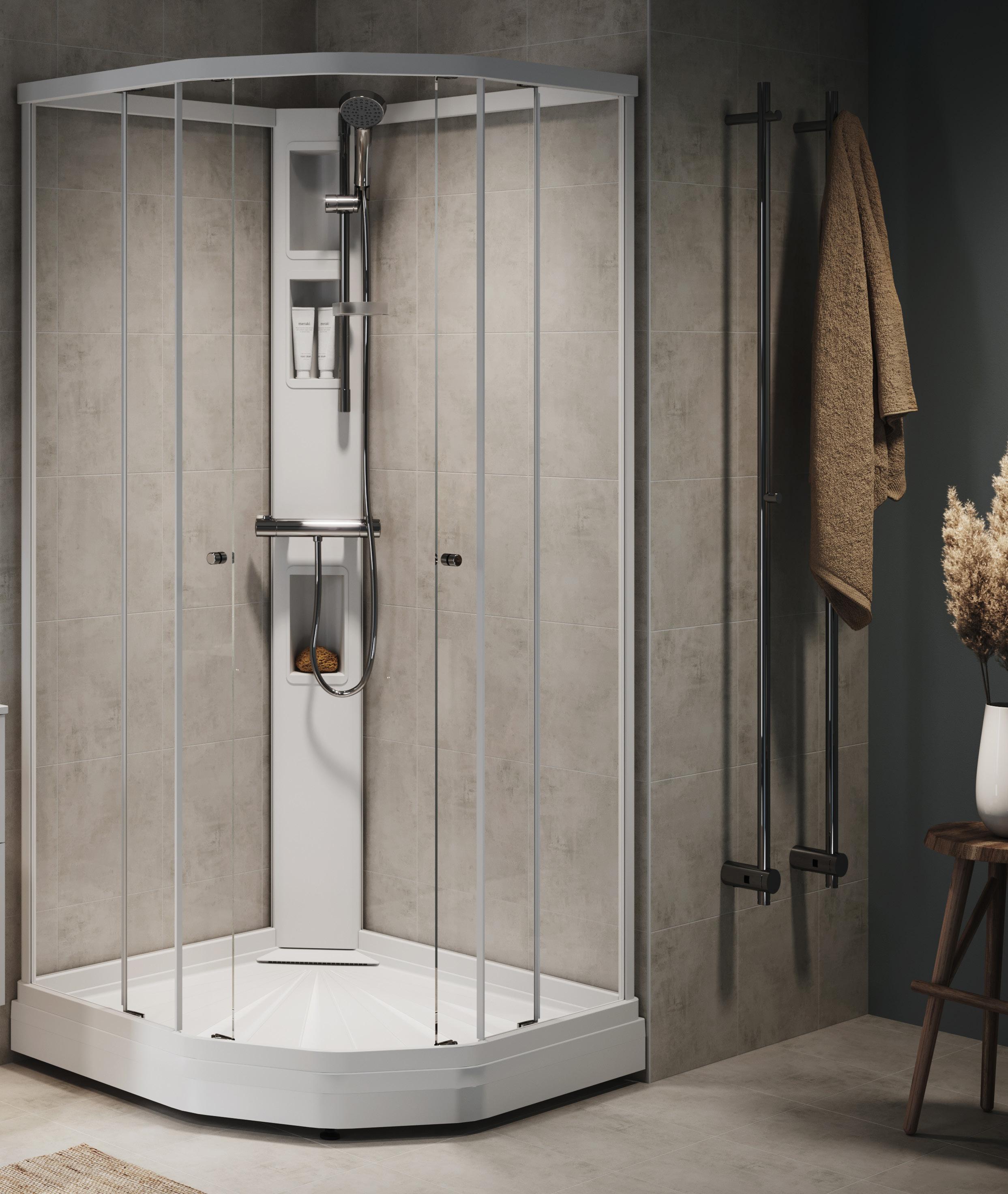 Med en Spirit Rett får du bedre plass inne i dusjen. Spirit Rett monteres i et av baderommets hjørner.