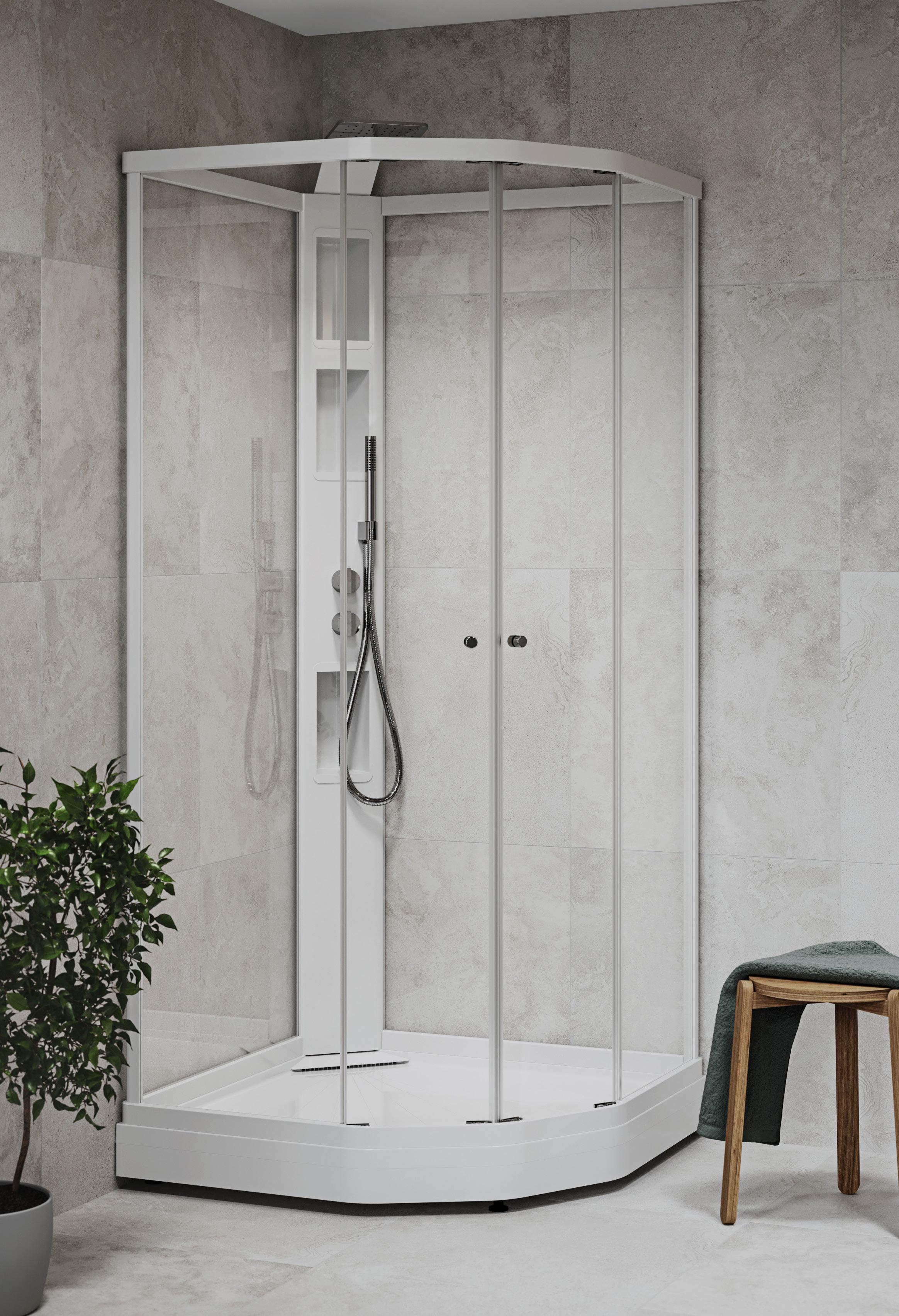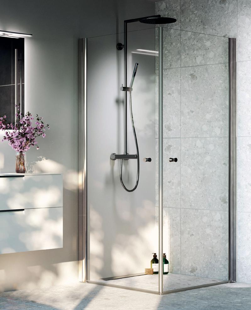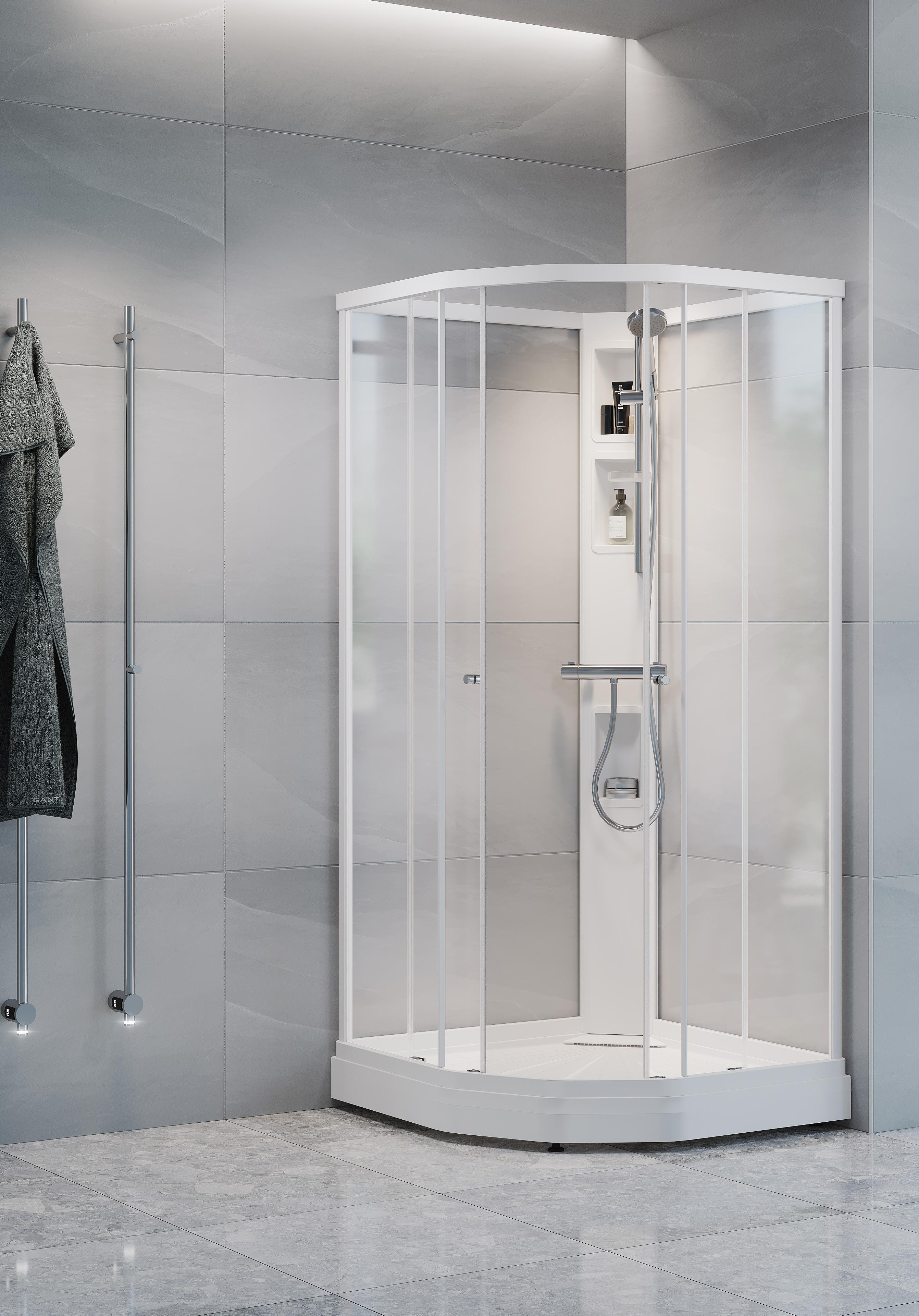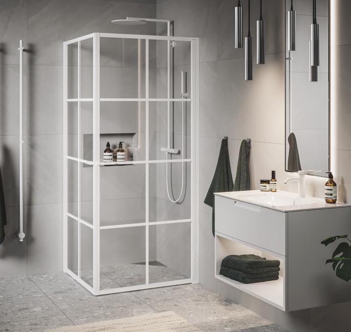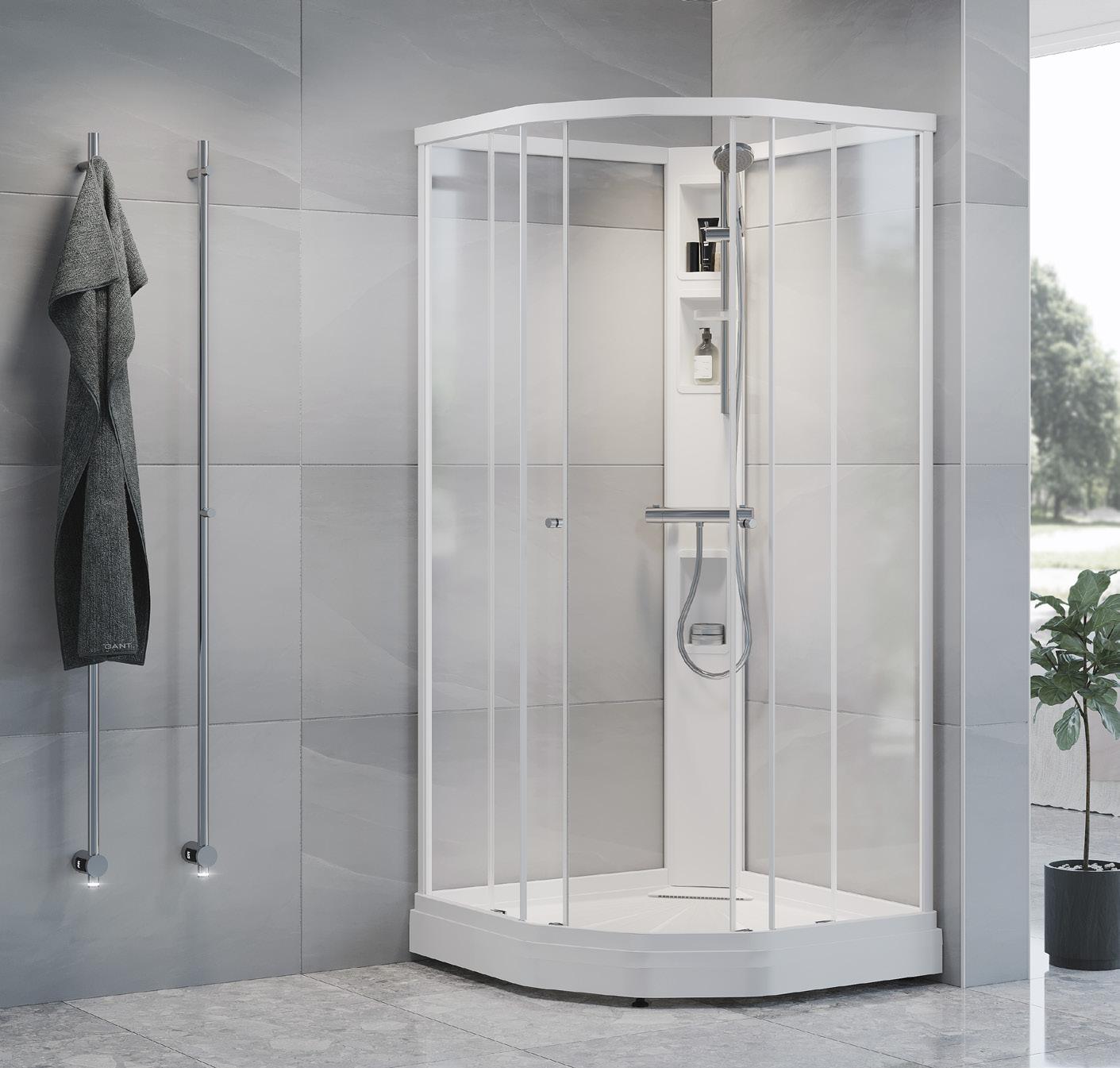 Med en Spirit Rett får du bedre plass inne i dusjen. Spirit Rett monteres i et av baderommets hjørner.