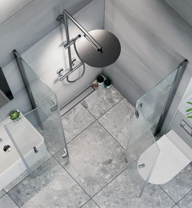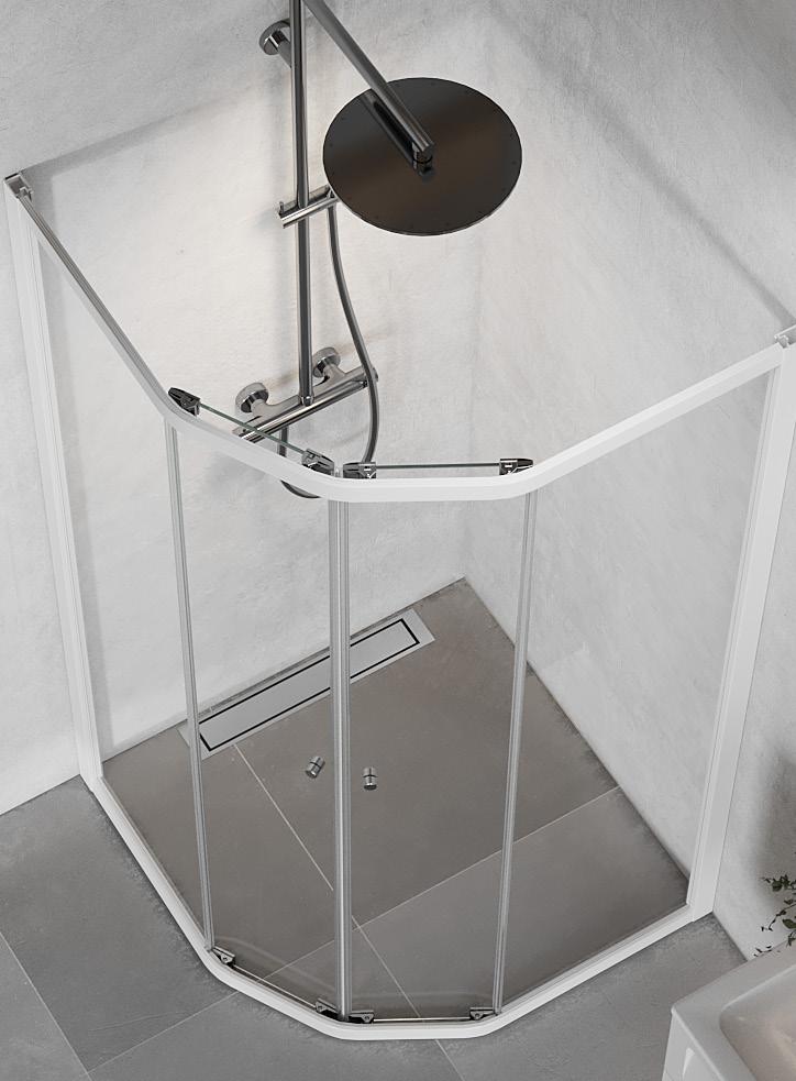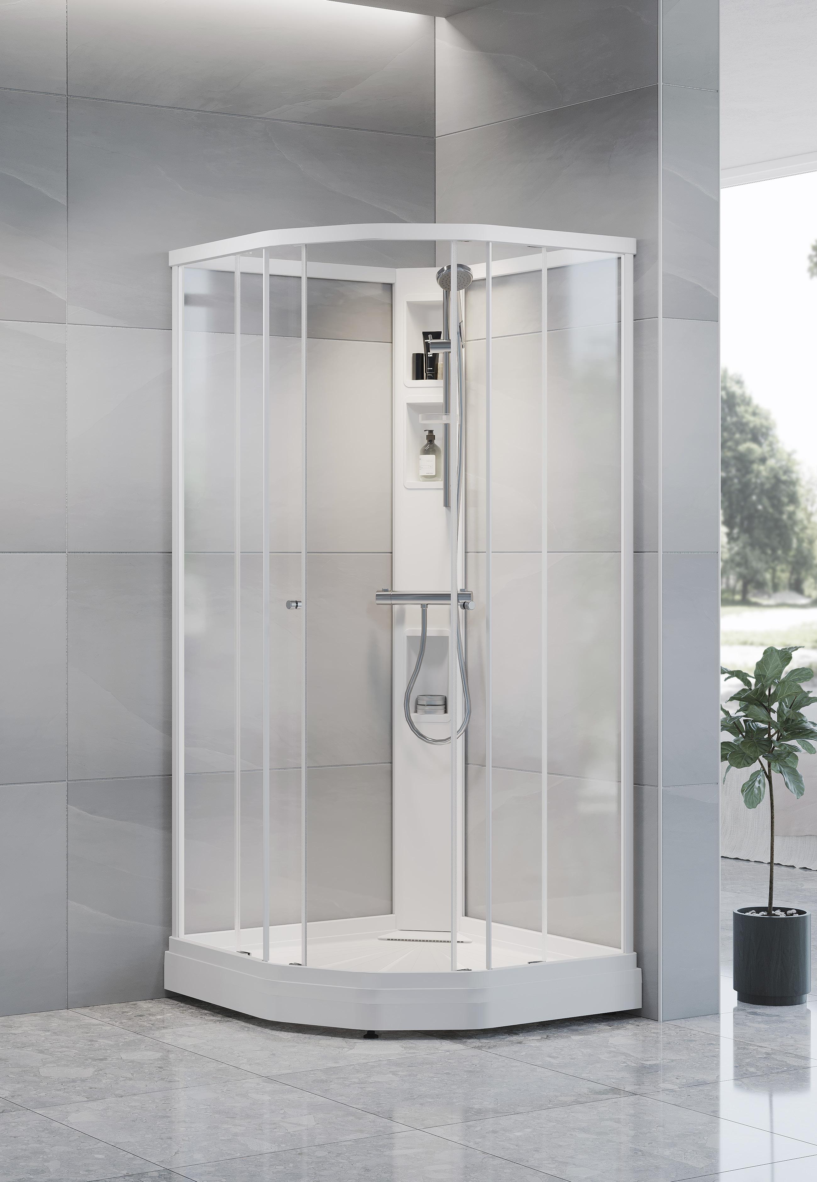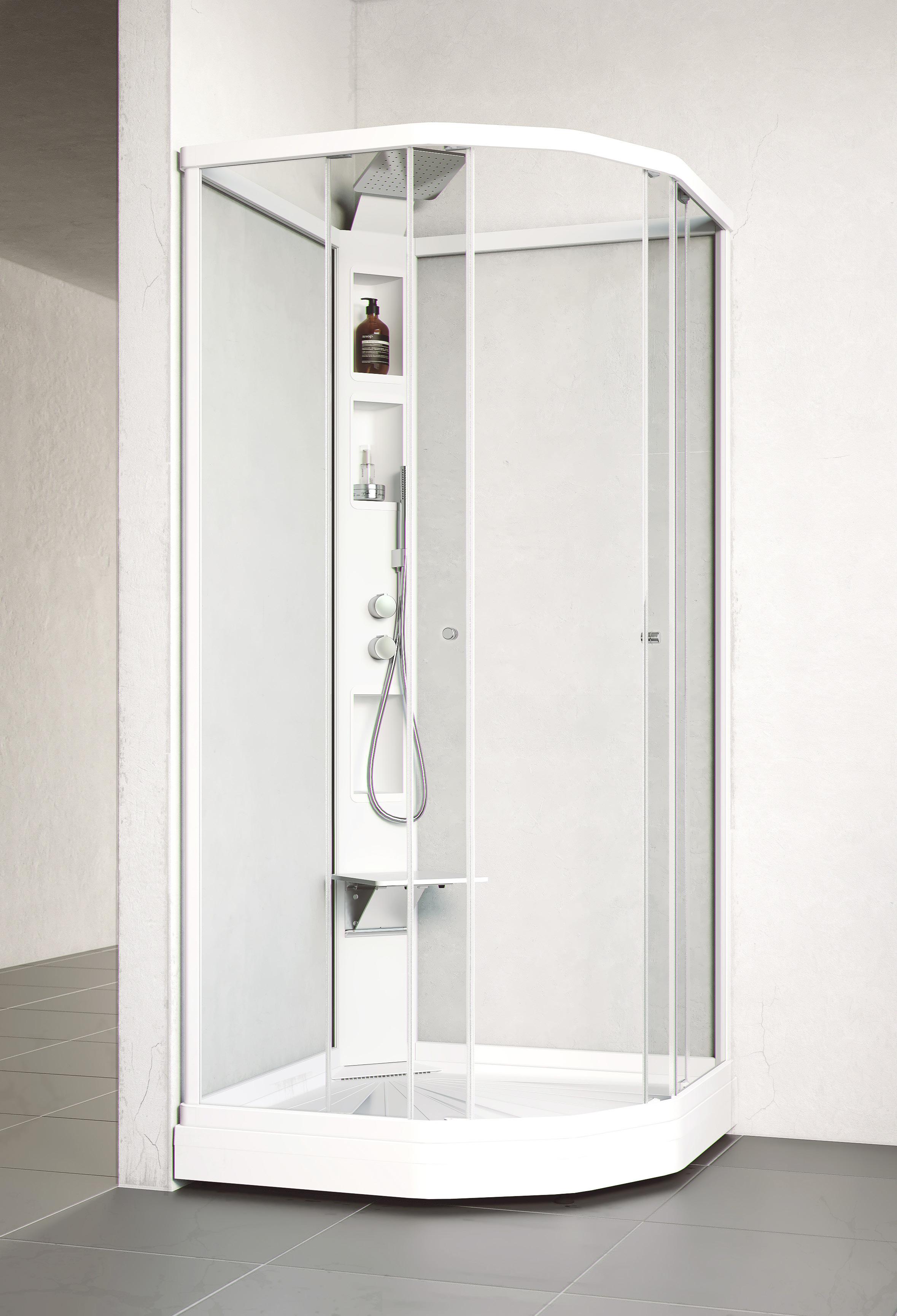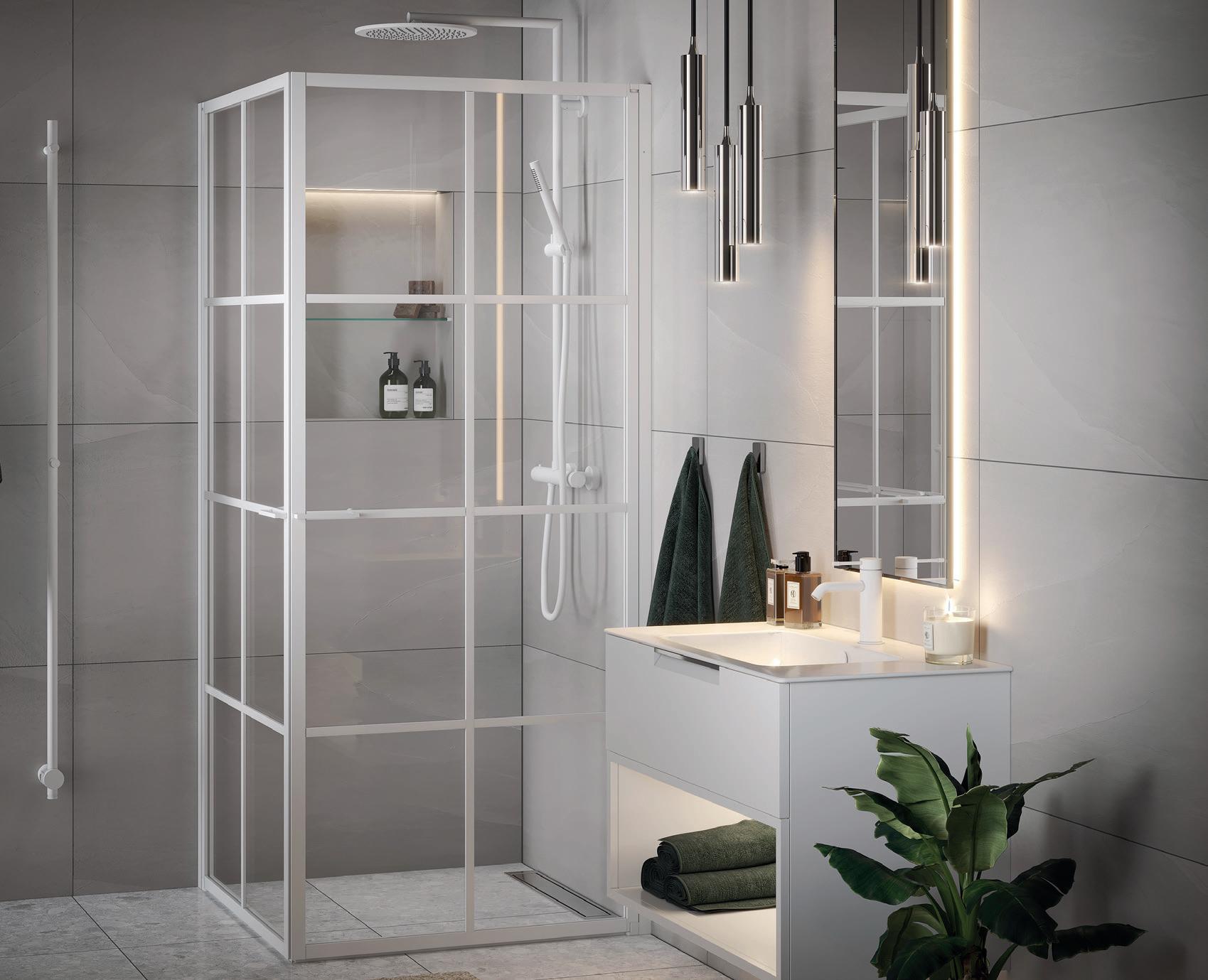 Med en Spirit Rett får du bedre plass inne i dusjen. Spirit Rett monteres i et av baderommets hjørner.