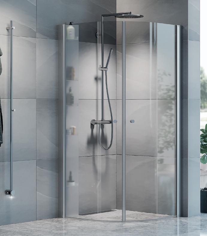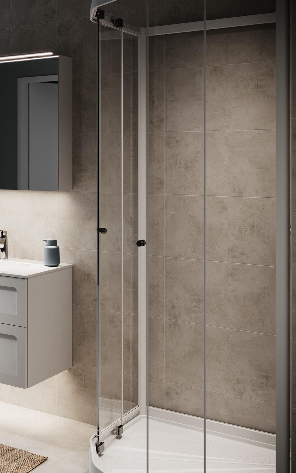 Vår Spirit J gir en mykere følelese i ditt baderom og passer såvel i store som små baderom. Begge dørene kan slåes inn, noe som gir god plass når dusjen ikke brukes. Perfekt dersom du ønsker å erstatte ditt badekar med en dusjløsning. Da kommer avløpet inne i dusjen.
