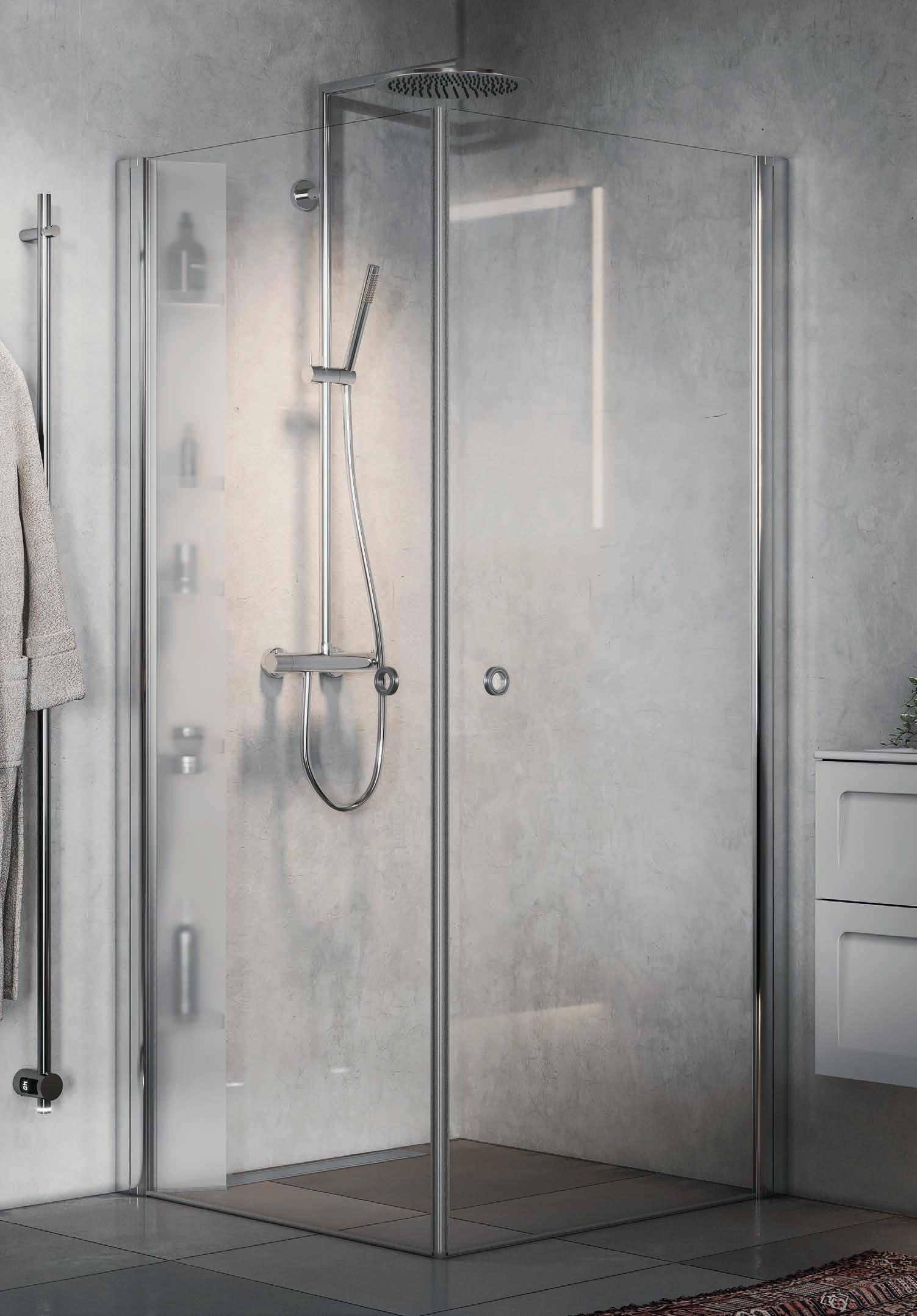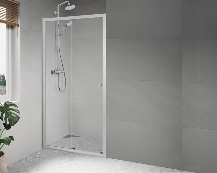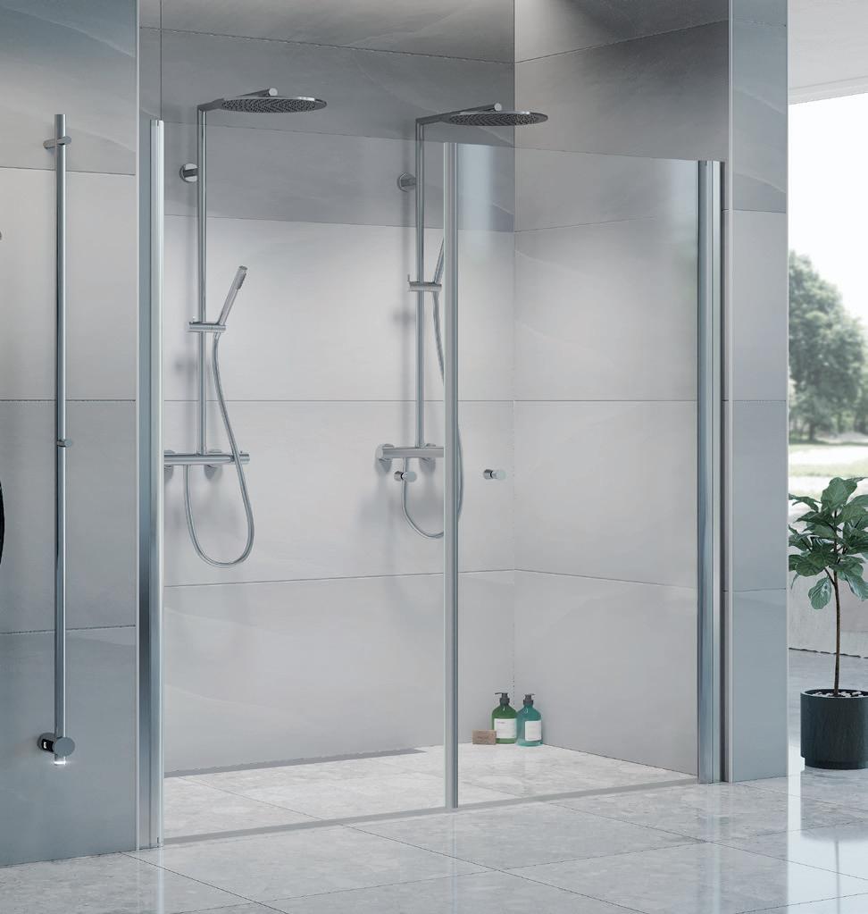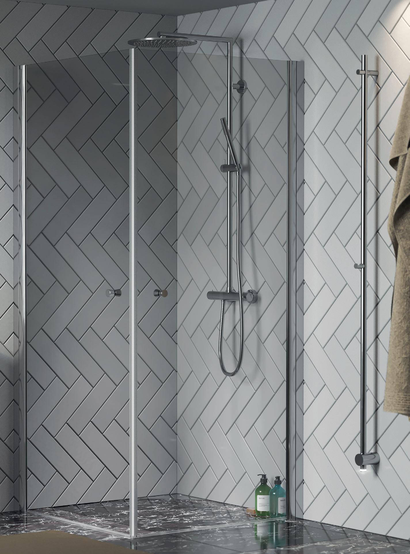 Spirit Swing består av 1 dør og 1 fastvegg. Dette gjør Spirit Swing perfekt for deg som har f.eks. et skap eller vaskemaskin som er plasser helt inn til dusjen.