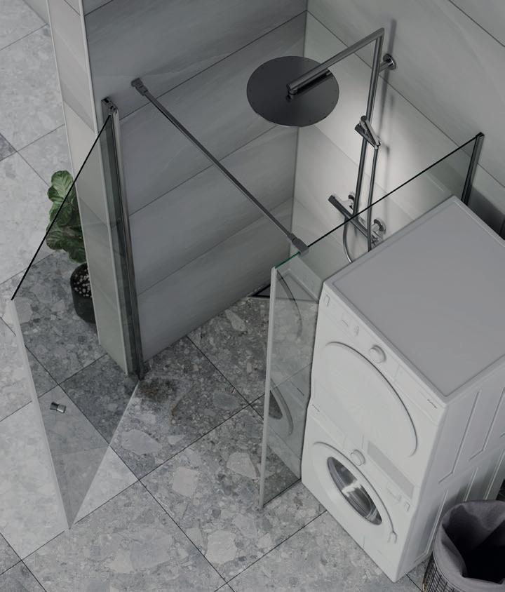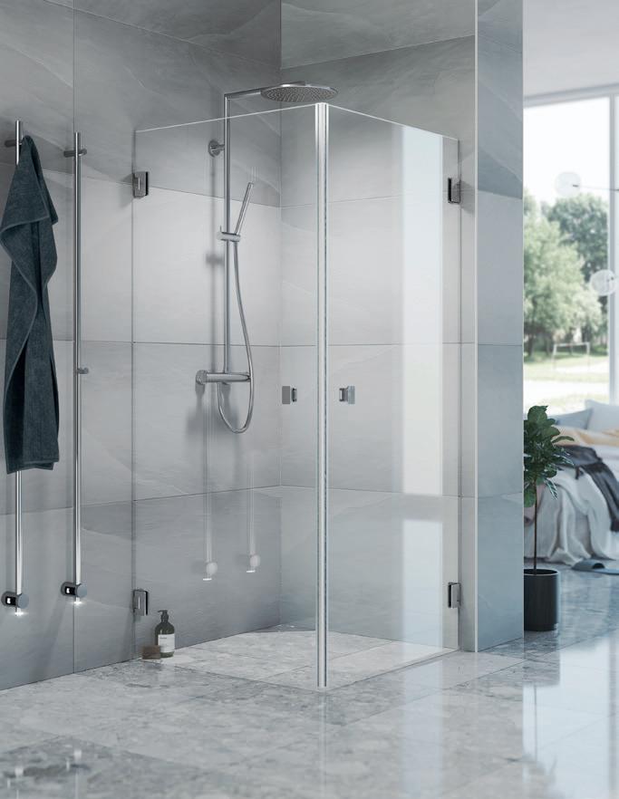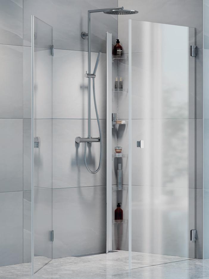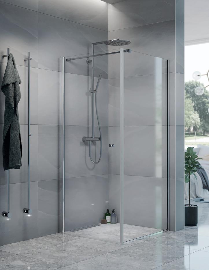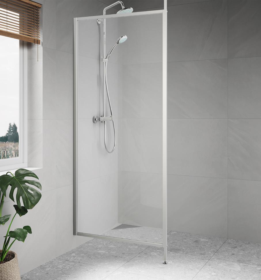 Spirit Swing består av 1 dør og 1 fastvegg. Dette gjør Spirit Swing perfekt for deg som har f.eks. et skap eller vaskemaskin som er plasser helt inn til dusjen.