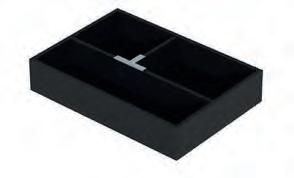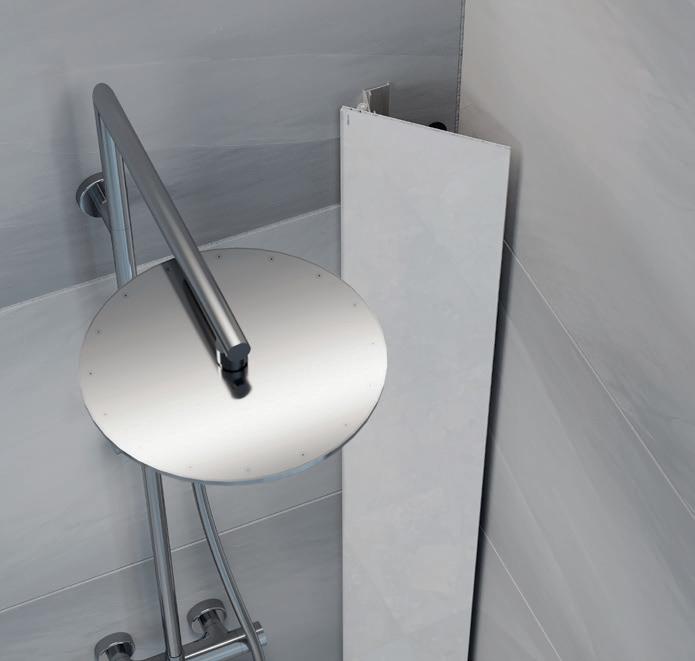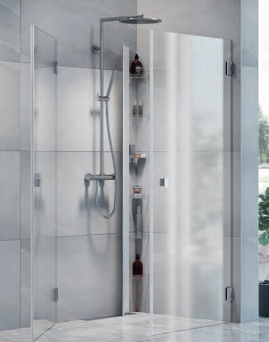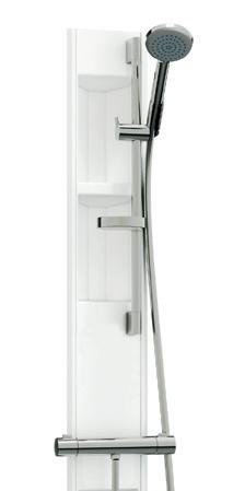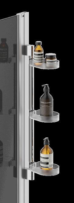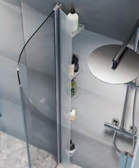 Stilren hylle med god dusjoppbevaringsplass som på en smart måte skjuler alle dusjprodukter. Monteres enkelt på dusjveggens veggprofil.