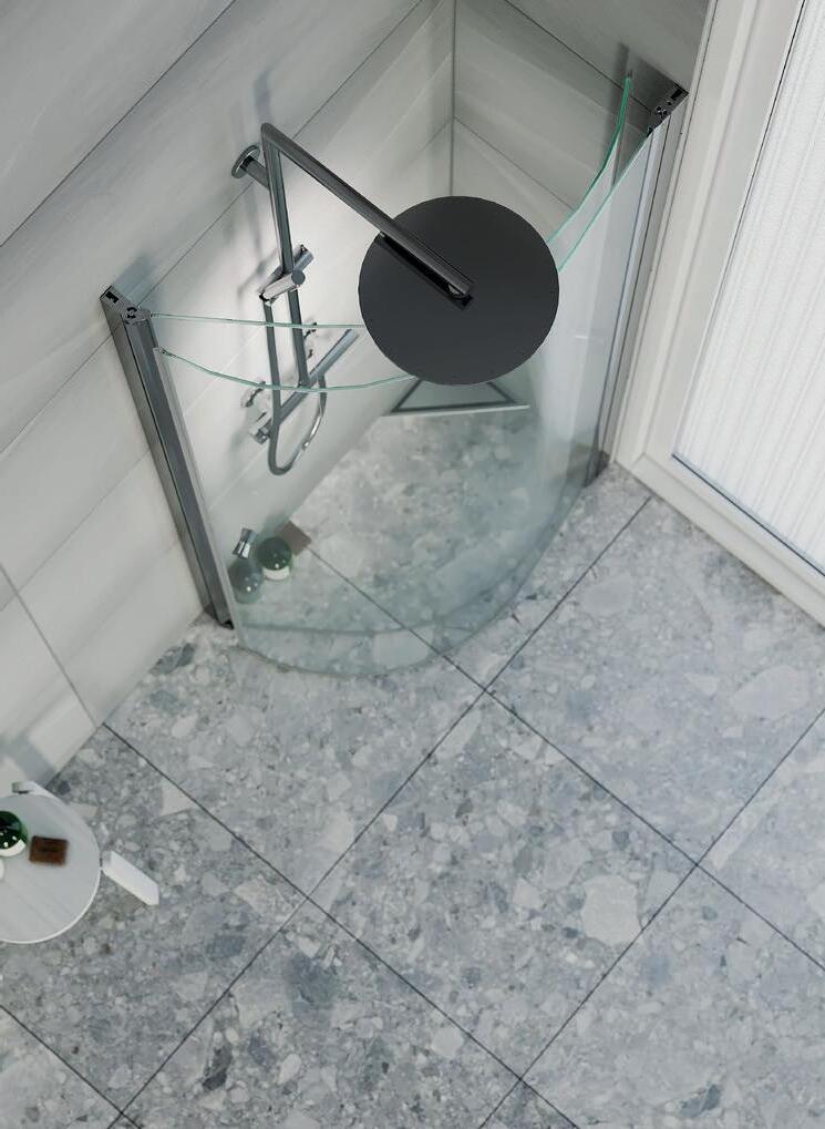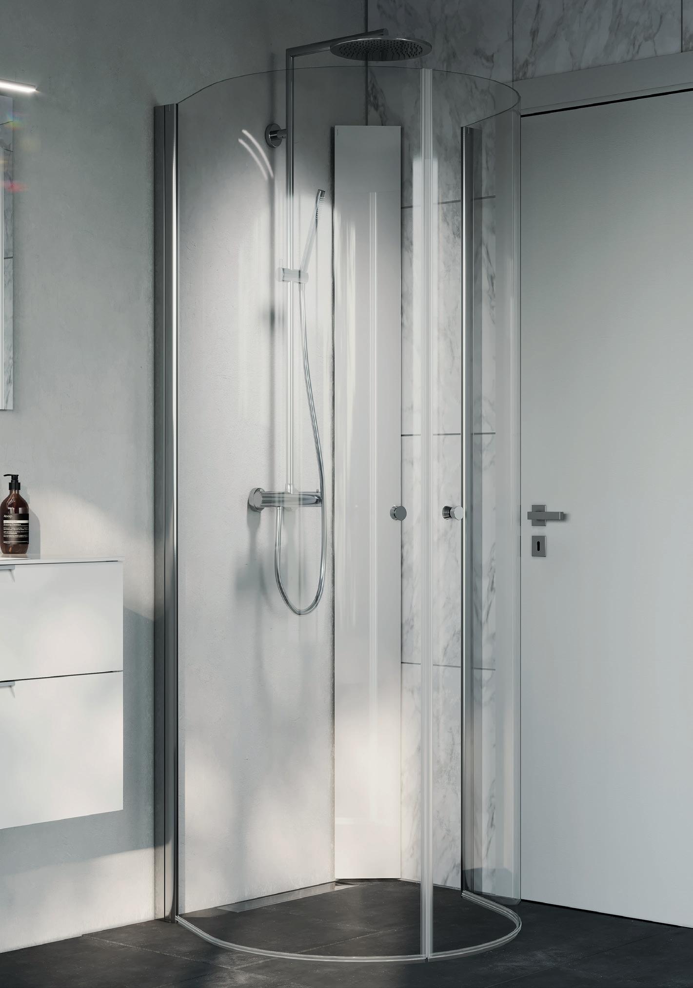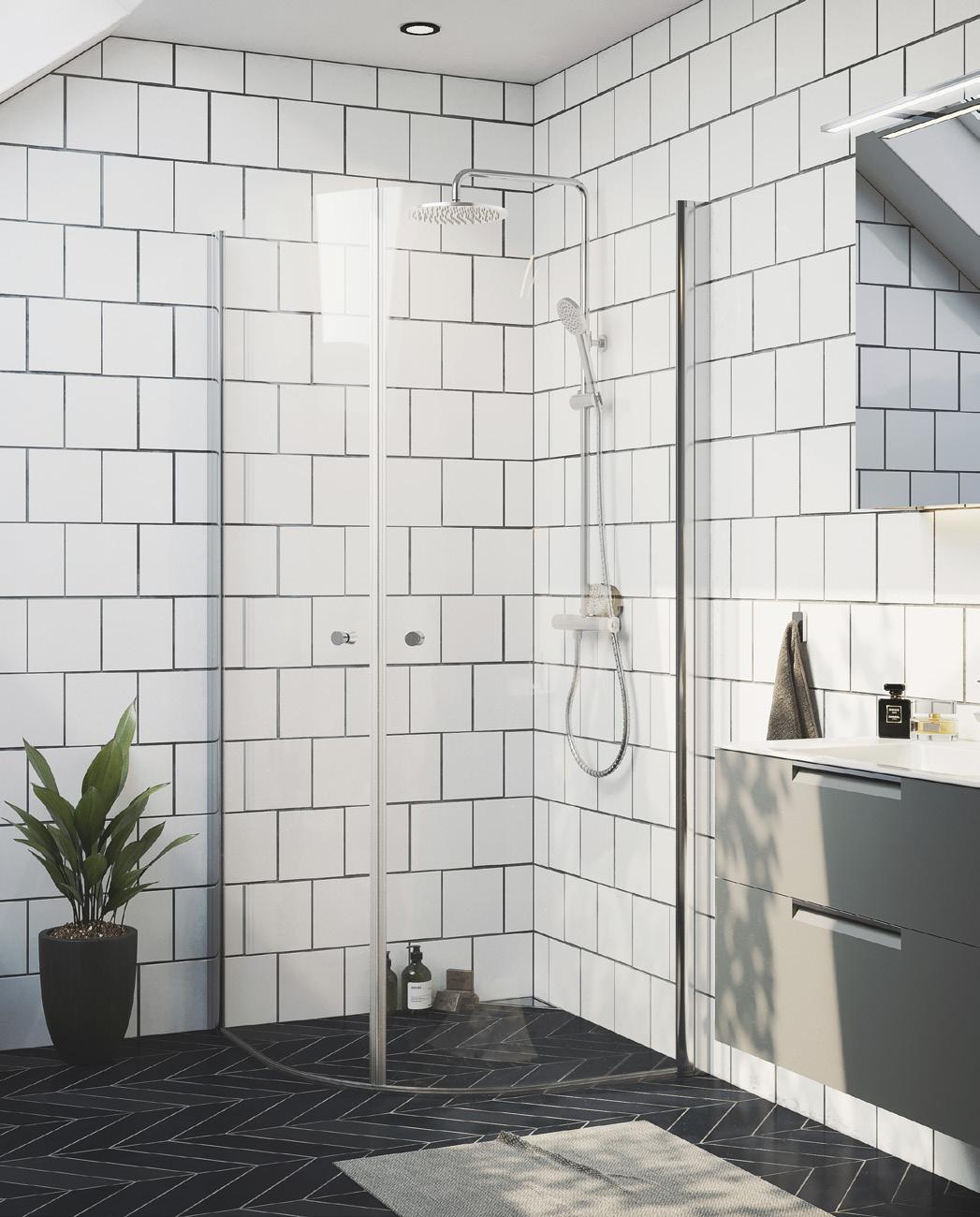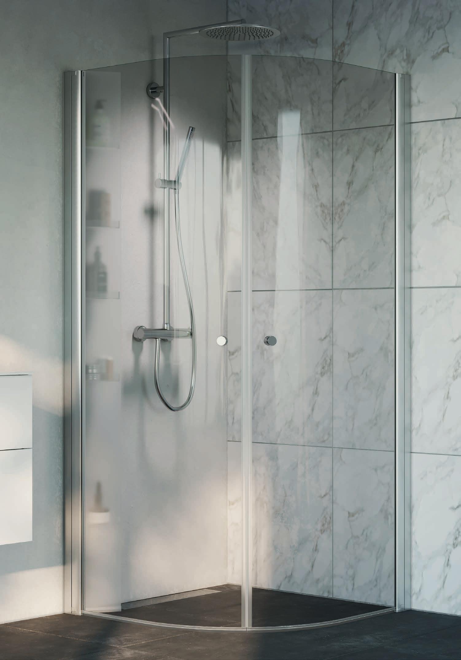 Med en dusj med rundt design skaper du en mykere følelese i ditt baderom, samt bedre plass utenfor dusjen. Spirit Rundt monteres i et av baderommets hjørner.