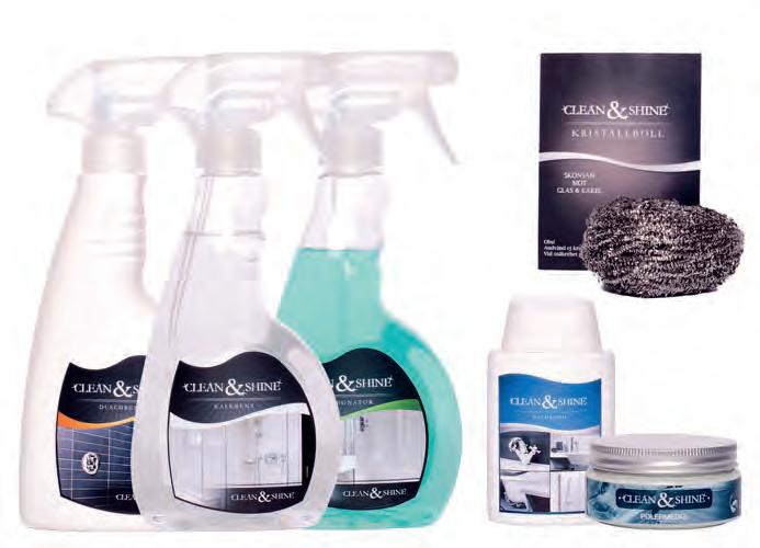 Du kan med fordel bruke et av våre rengjøringsmidler Impregnator-, Duschrent- eller Kalkrent Clean & Shine. (Kristallboll bare på harde avleiringer). For informasjon, se side 194.