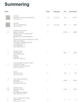 Når alt summeres får du en oversikt over alle produkter, en detaljert spesifikasjon over materialbehov for gipsplater, samt bilder av hver vegg / gulv og en 3D-tegning.