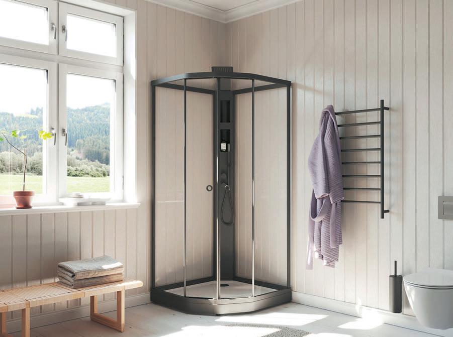 Det finns en Spirit för alla badrum. Med sina rena linjer och stora glasytor passar Spirit in överallt. Väggar och dörrar kan enkelt anpassas och snedkapas utifrån måtten i ditt badrum eller skräddarsys helt efter dina önskemål.