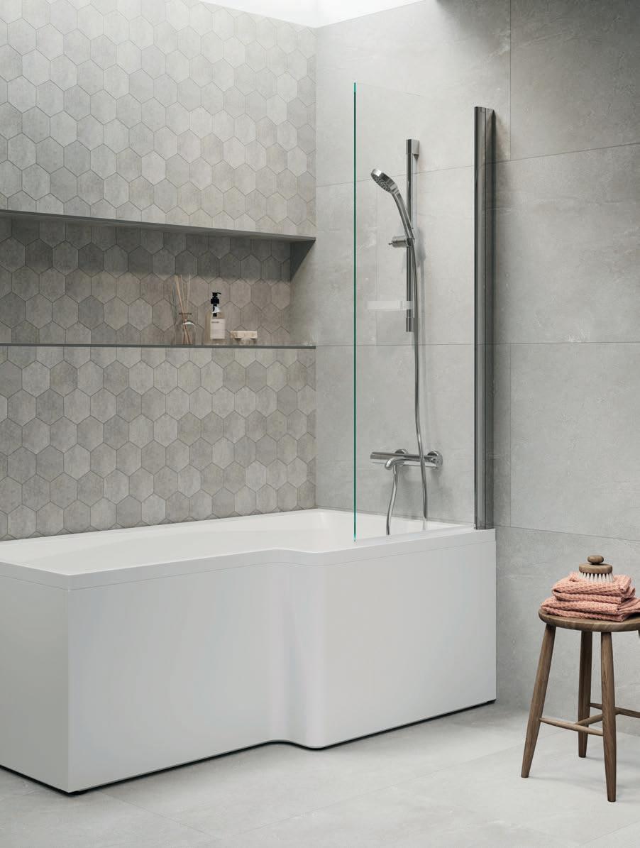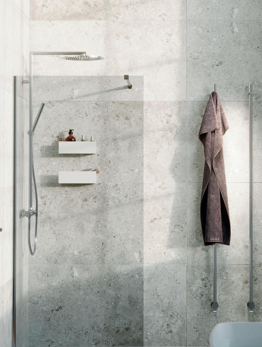 Ger en mjuk känsla och passar såväl små som stora badrum. Perfekt att ersätta badkaret med, eftersom golvbrunnen då hamnar inne i duschen.