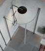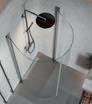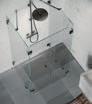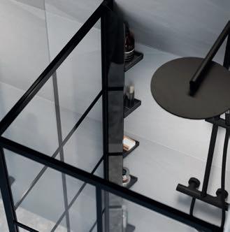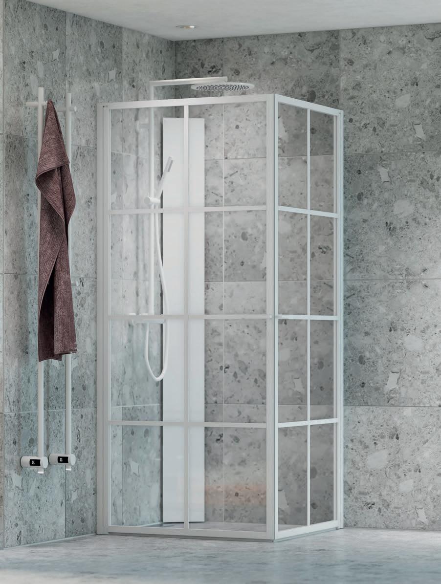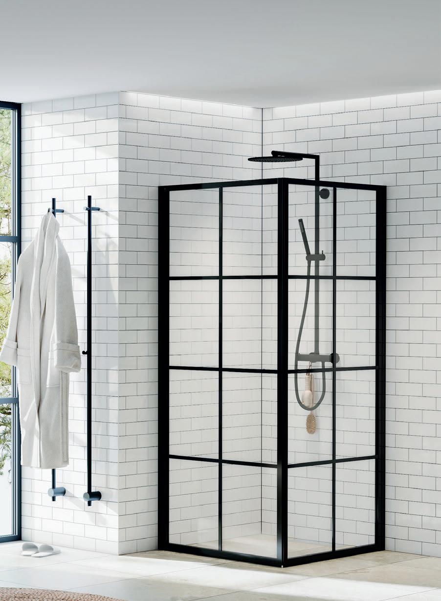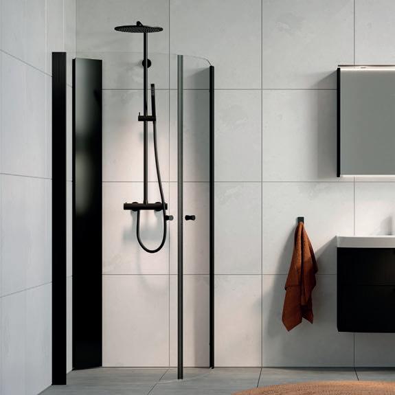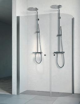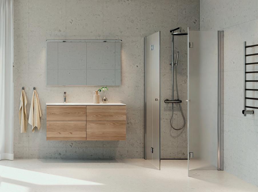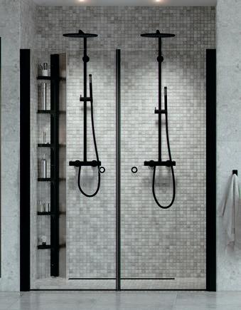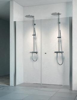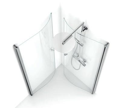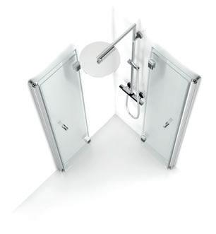 Fäll in glasdörrarna när du inte använder duschen för att skapa mer utrymme i badrummet. macrodesign.se