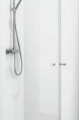 Det mest effektiva och miljövänliga sättet att hålla glasen rena och fina är att efter varje dusch dra med en gummiskrapa. Rengör glasen minst varannan vecka med något av våra rengöringsmedel Clean & Shine Impregnator, Duschrent eller Kalkrent. (Kristallboll endast vid hårda avlagringar). För information, se sid 114. Alternativt kan du använda diskmedel, eller ett milt ättiksbaserat rengöringsmedel vid förekomst av kalk i vattnet.