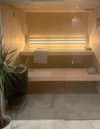En rum med utsikt. Grace har 8 mm glas och är tillräckligt tjockt för att användas i bastun. Det behövs bara några ventilationshål som vi gör innan glaset härdas. Vill du ha en liknande lösning, hjälper vi dig gärna.