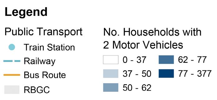 Car ownership is high, even in older areas surrounding Cranbourne station with relatively higher bus coverage. This could mean that public transport is not convenient enough for the residents’ needs compared to driving.