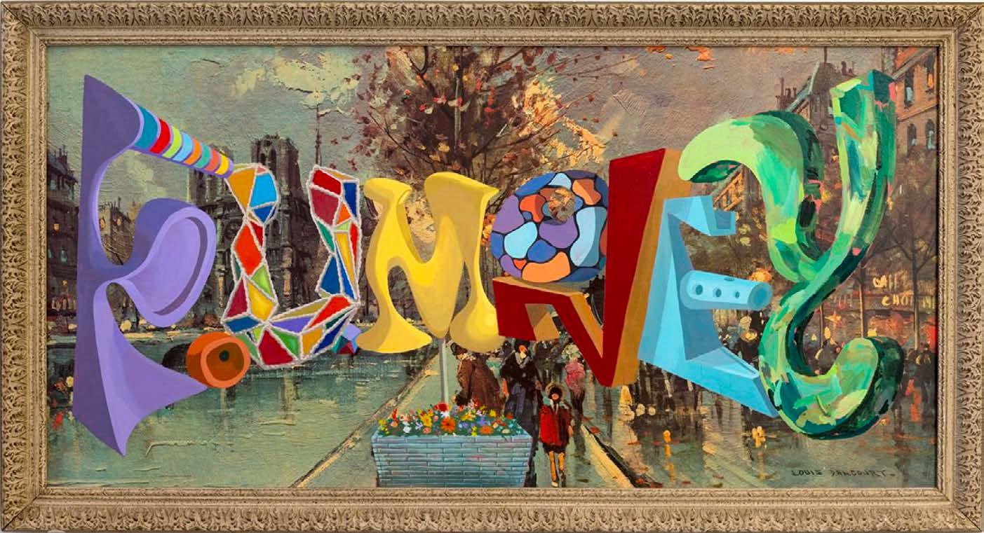 been shown all over the world. His most successful works have been the word paintings featuring oversized, threedimensional text painstakingly integrated into vintage landscape reproductions. The message of the paintings is often thought-provoking and almost always humorous, with Wayne pointing a finger at vanity, ego, and his memories of the South. Wayne has also received great praise for several public works he has created recently, including a successful show at Rice University where he built the world’s largest George Jones puppet head for a piece called Big Lectric Fan To Keep Me Cool While I Sleep.