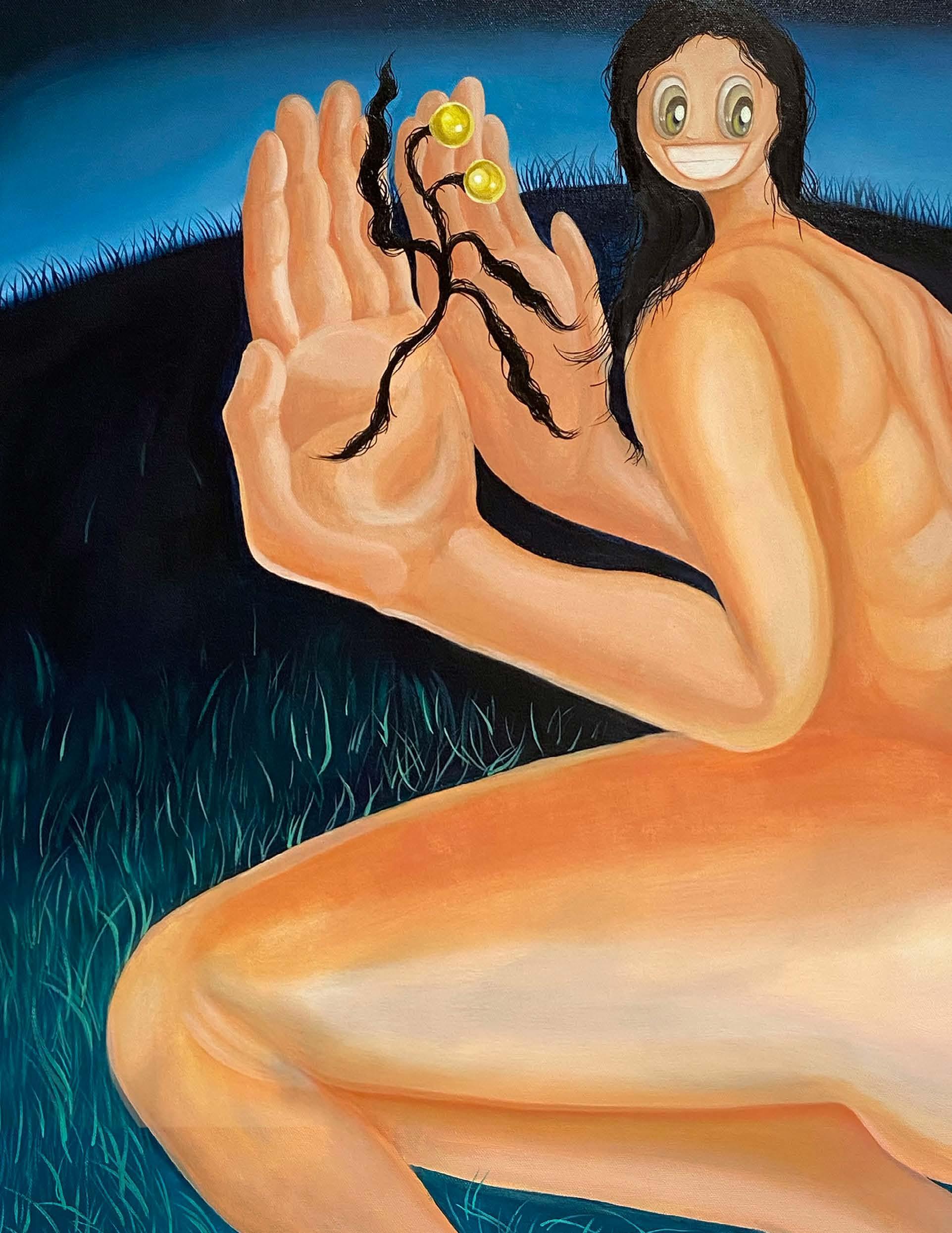 To delve into the fantastical world of Spime, born in 1992 in Montreal, Canada, was raised in Hong Kong, means to encounter an ever evolving family of figures. These figures are bold, narrative, and strange, illuminated by bright colours that display a childlike appearance of glorified innocence and serene scenes of everyday escape.