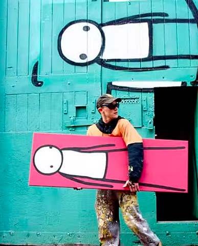 STIK is an anonymous British graffiti artist renowned for his iconic stick figures. Rendered in a pared back palette of black and white and accompanied by block colours, STIK’s designs are as simple as they are striking, made up of four lines, one circle, one square and two dots. Although minimal in design, STIK’s work is incredibly emotive with love and the community being at the core of all of his work. The artist spends a large amount of time scouting out the locations for his murals, choosing each site with precise intent and favouring the permission of locals over that of the authorities. STIK’s artwork is created for the people and his philanthropic efforts echoes this sentiment. As an artist that only authorises the sale of his primary market work in auction on the condition that all proceeds go to charity, STIK has raised thousands of pounds for several charitable organisations. Most notably, STIK works towards aiding and preventing homelessness as he himself spent many years living in shelters or on the street.