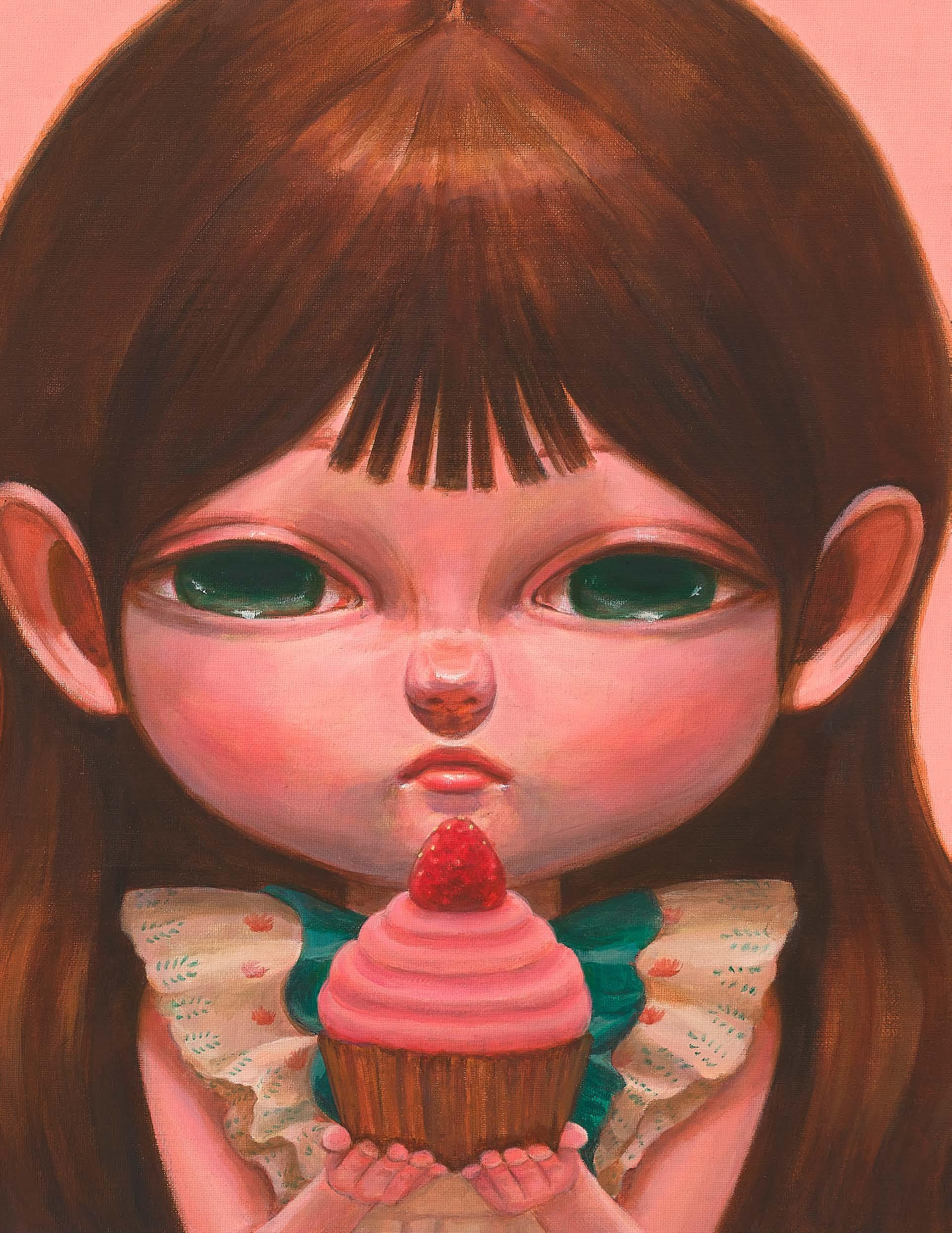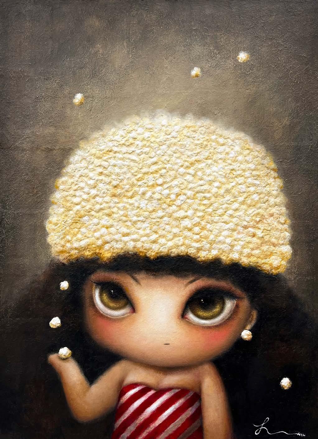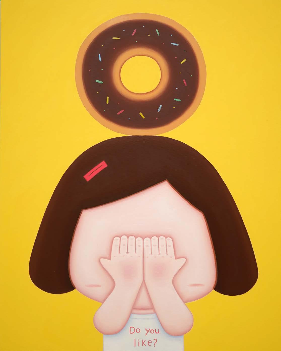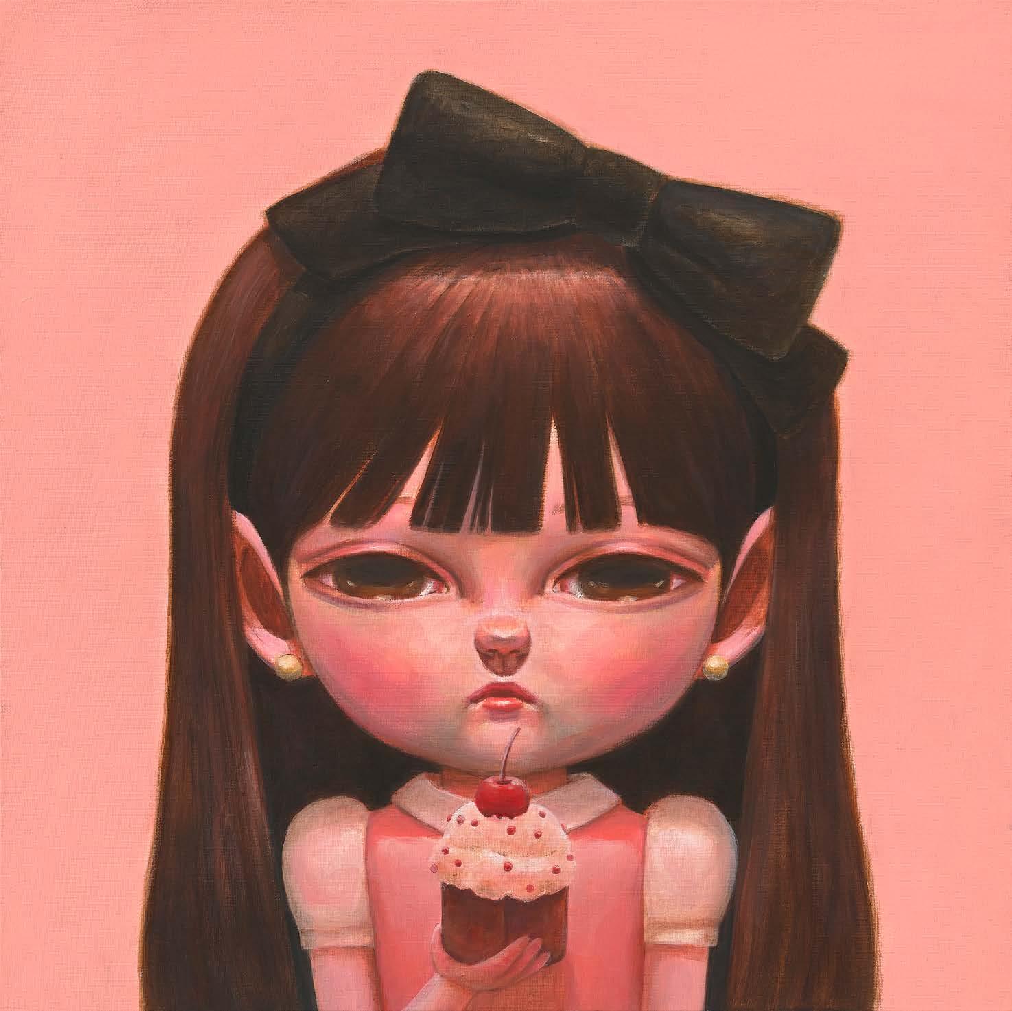 Among Hana Kwon’s works, many depict a stylized character interacting with food. The sense of taste that is vividly brought to the audience through the expressions of the characters and the representation of the food itself, takes the viewers - with the help of emotional experiences associated with senses - back to their special moments in life. In this sense, food itself is a particular narrative, and through its representations she shares the feelings that she has captured in specific instants. Painting, for Hana Kwon, is like taking a journey to find peace in her inner world.