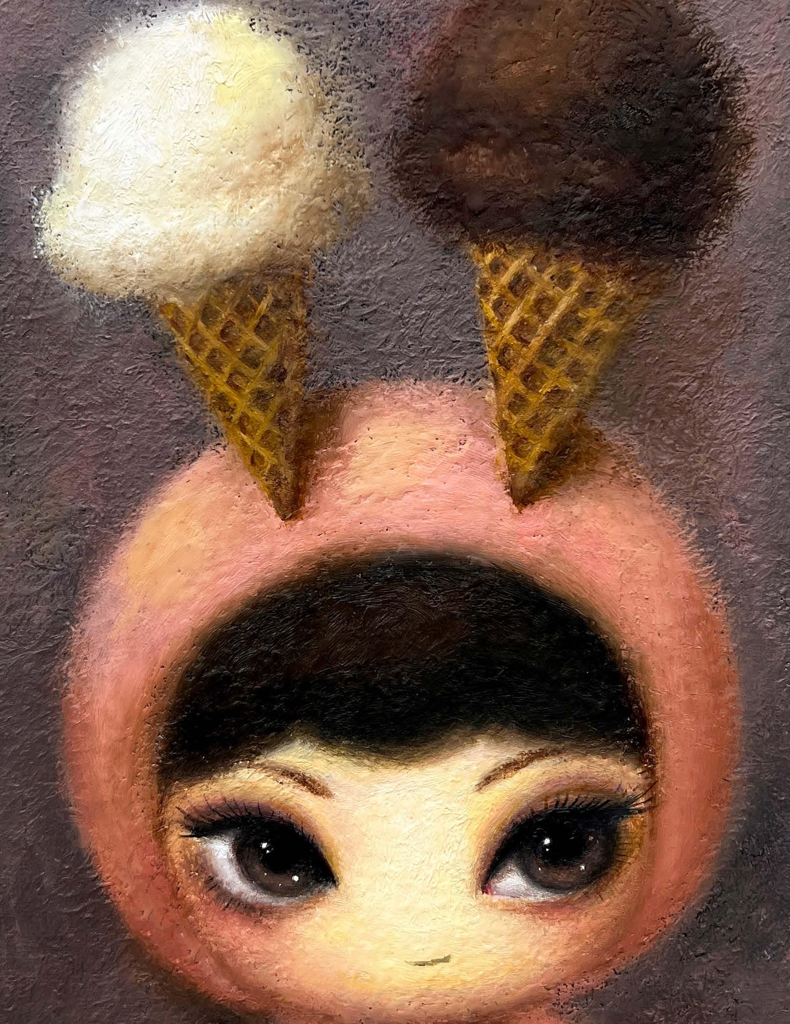 The kaleidoscopic and pastel colours, coupled with nostalgic fantasies and the adorable characters, namely children, evoke a sense of sympathy verging on pity in the viewer. Often infectious angelic features are subtly embedded with tones of mischief and mayhem, referencing the darker undercurrents of emotion within the genre. These characters are the embodiment of a lost innocence.