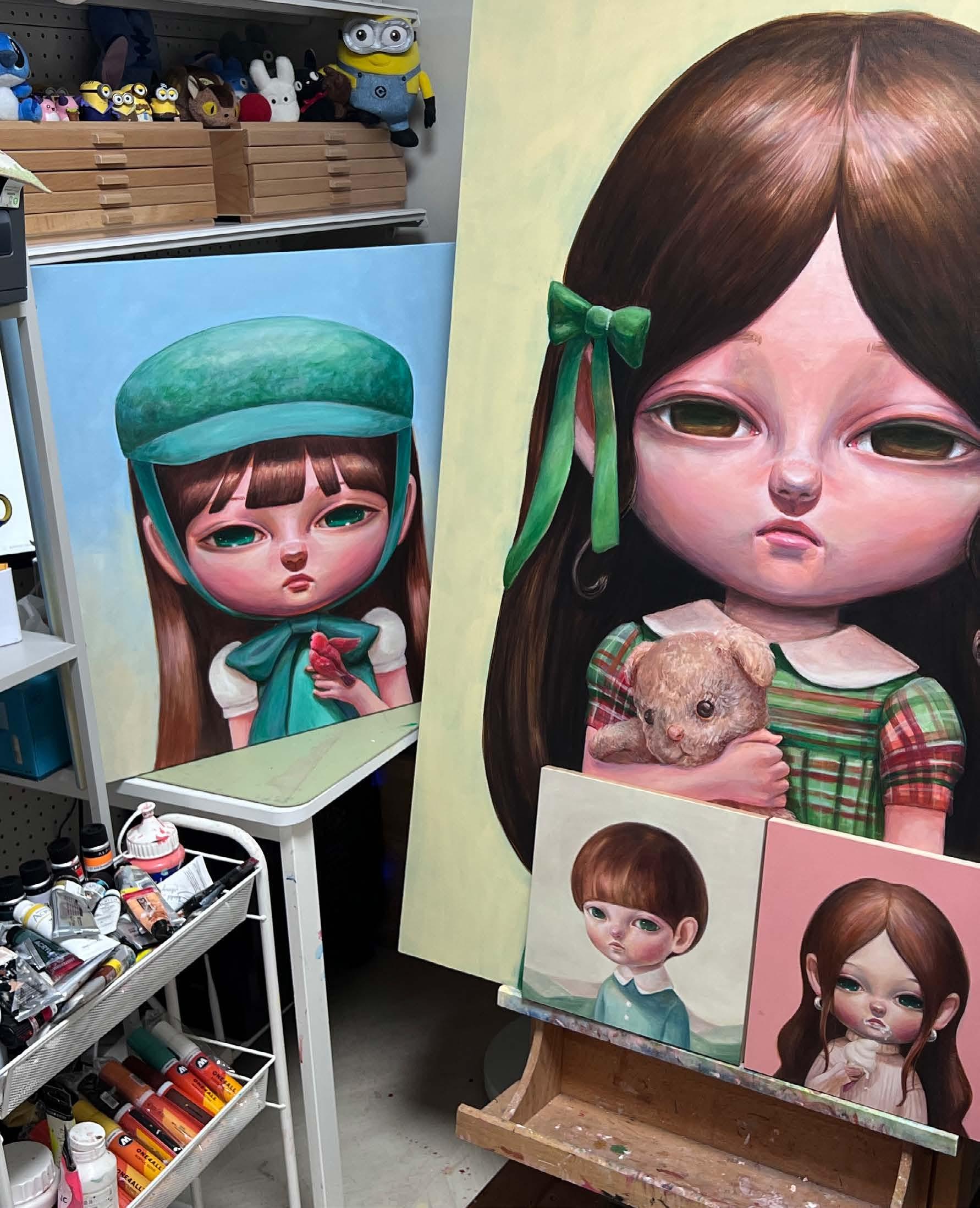 Yoon’s artworks are founded from drawings, which can help her express herself in the most natural, authentic way, as well as helping to establish the worlds and characters in her paintings.
