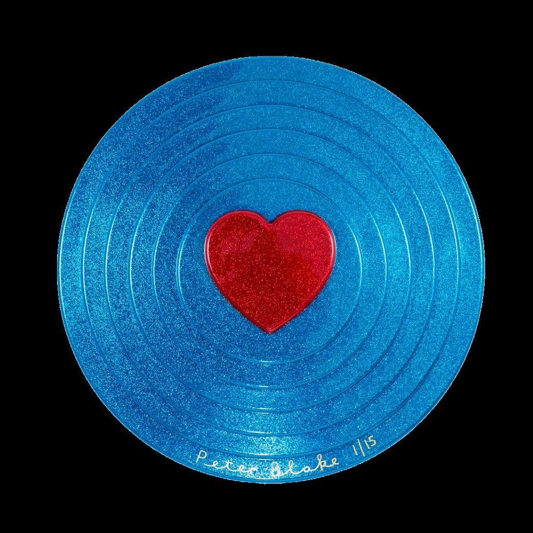 46 RED HEART ON BLUE TARGET (METAL FLAKE), 2017 EDITION OF 15 + 5 APS VACUUM FORMED PLASTIC, PAINT 69 x 69 x 10 CM £3,000