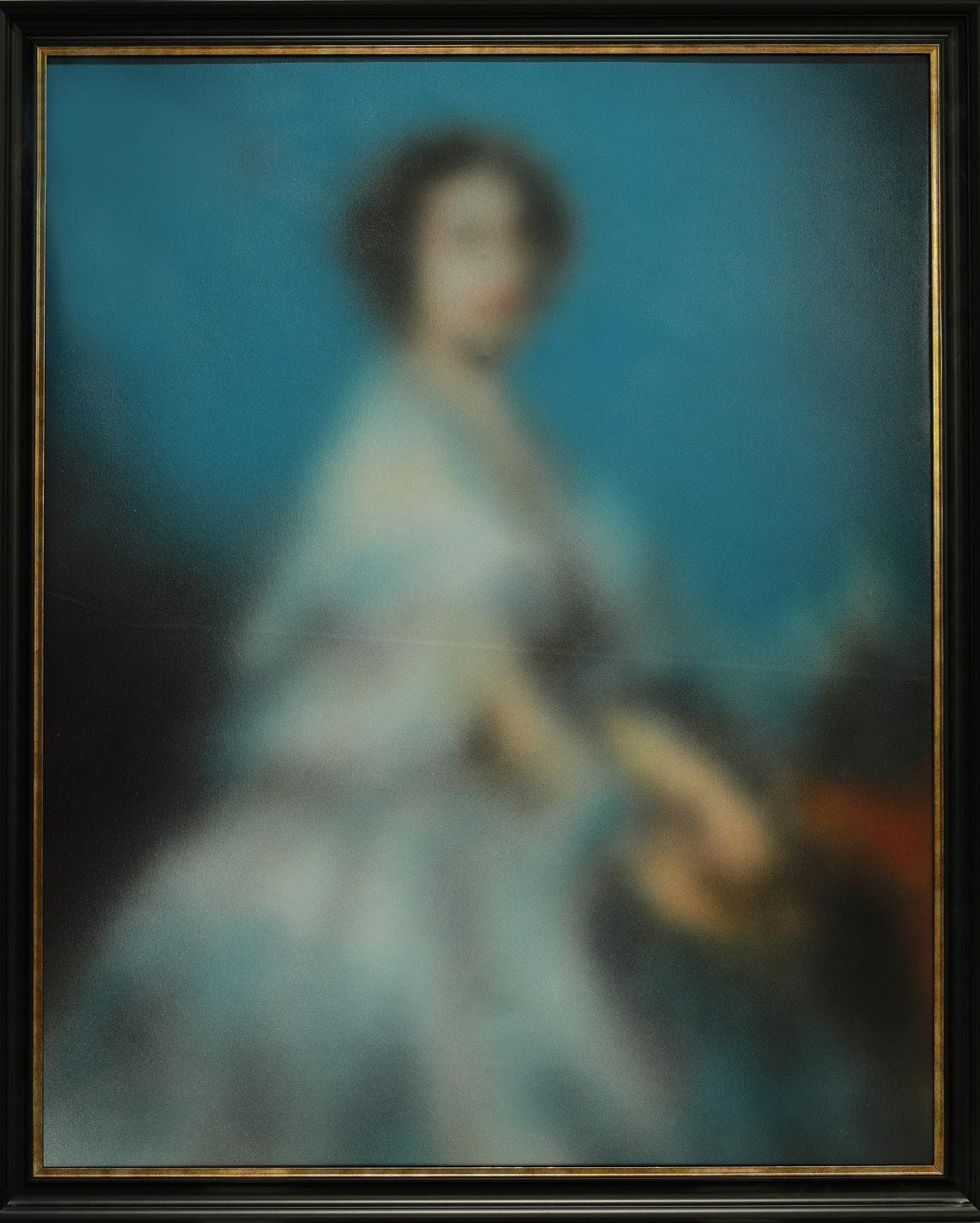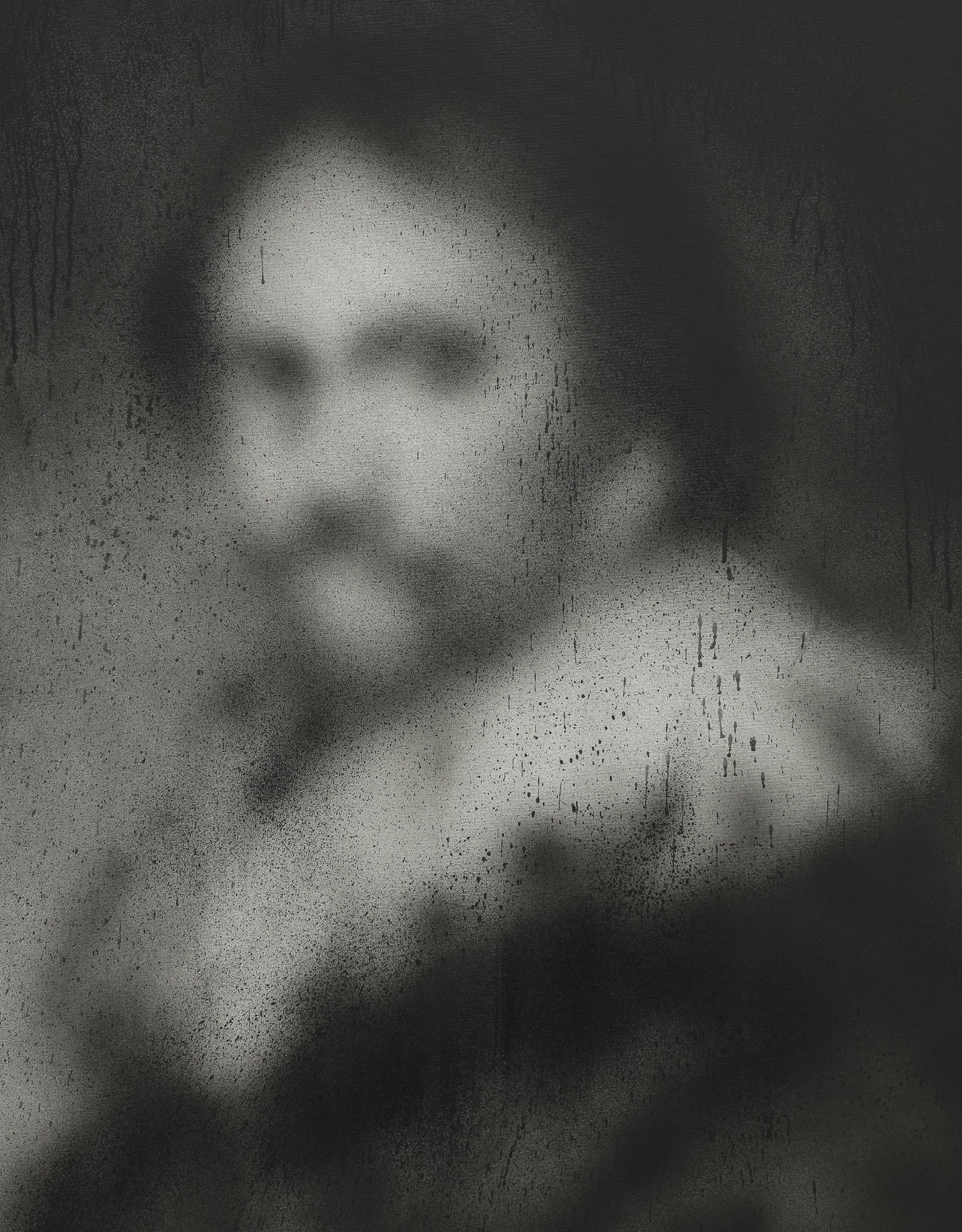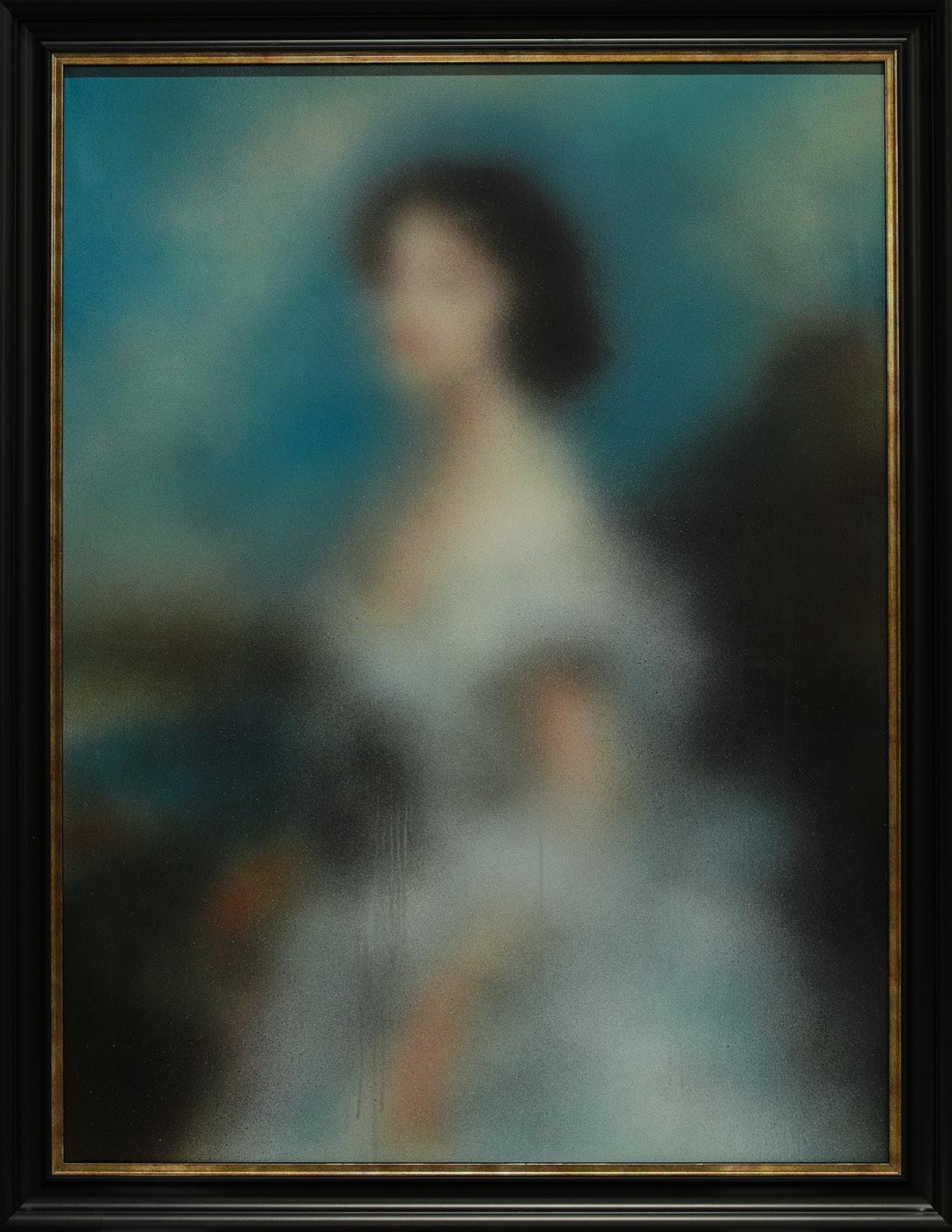The works are based on relatively well-known, existing portraits of each subject, but given the twist of the Miaz Brothers’ trademark blurring technique. Achieved by building up layers of aerosol paint – without ever using a brush or touching the canvas – this technique renders the subjects unfocussed yet at the same time uncannily familiar.