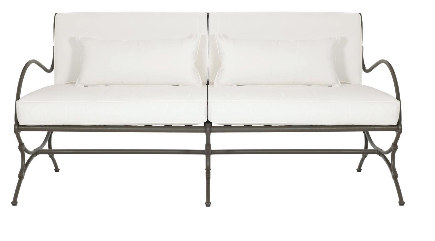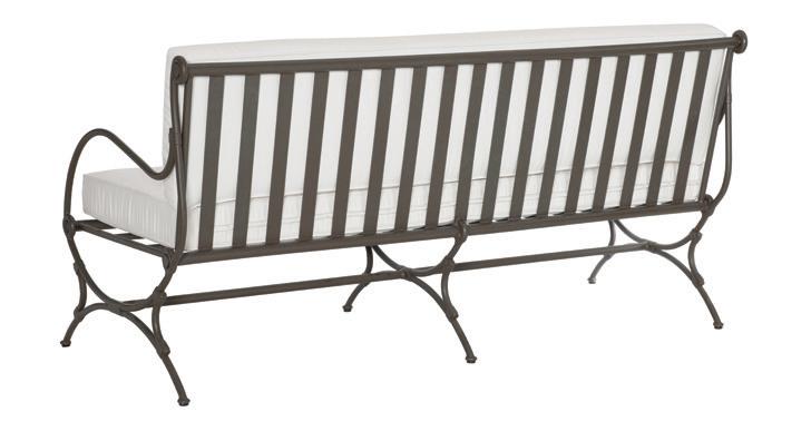 Two 22” x 22” throw pillows are standard. Bench Luxury Spring-Down loose seat cushion and two Blend-down loose back cushions are standard.