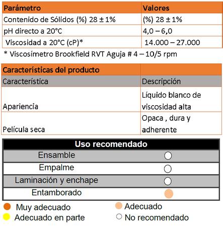 Realizar presión sobre las dos superficies a pegar con el fin de asegurar la correcta adhesión. Se sugiere un tiempo mínimo de prensa de 60 minutos**