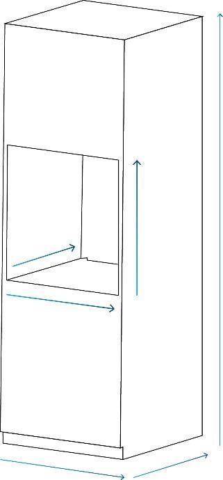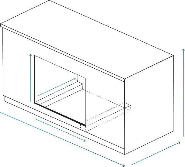 • Es necesario dejar al menos un claro de 55 cm entre el mueble de empotre y la superficie más próxima al mismo.