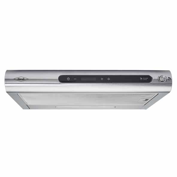 Campana de 596 mm de ancho en acero inoxidable con 3 velocidades de operación y un óptimo sistema de recirculación.