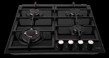 Cubierta en cristal negro de 60cm de ancho con 4 puestos a gas y parrillas en hierro fundido que por su diseño garantizan estabilidad y seguridad.