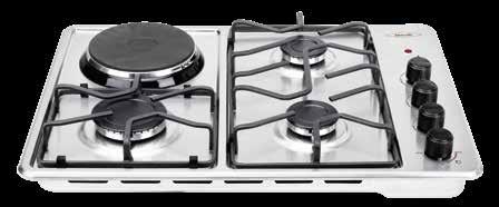 Estufa de empotrar en acero inoxidable de 60 cm de ancho y 43 cm de profundo con 3 puestos a gas y 1 puesto eléctrico, cuenta con parrillas antideslizantes en platina que te brindan estabilidad y seguridad en la cocción.