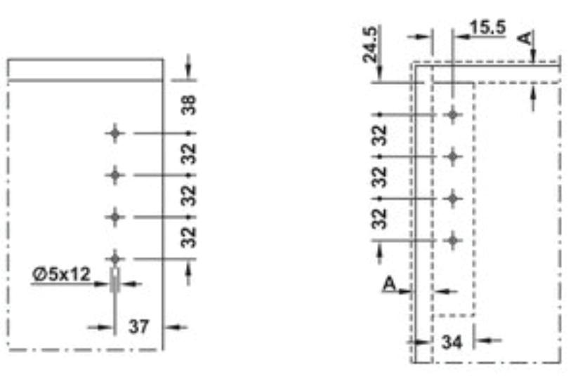 Distancia X mm (en grosor de tablero superior 16 mm) 83 19 74 22 64 26 52 28 46