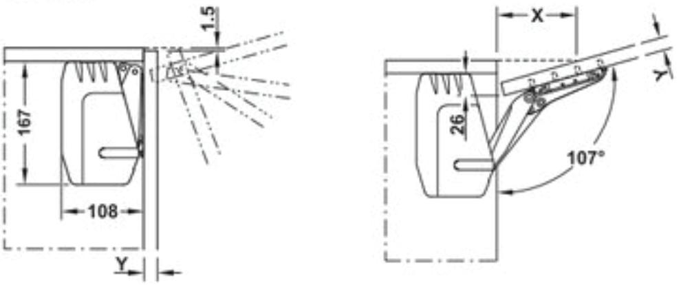Ángulo de apertura 107º (limitable a 90° mediante limitador angular de apertura)