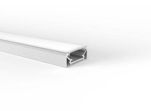 Este perfil de sobreponer permite cambiar las grapas y las tapas de acuerdo a la aplicación que se le desee dar dependiendo del mueble: puede ser a 90° o una aplicación esquinera a 45°.