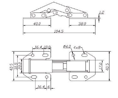 Bisagra 260 para sofá dorada 260mm ajuste 180°/135°/105°