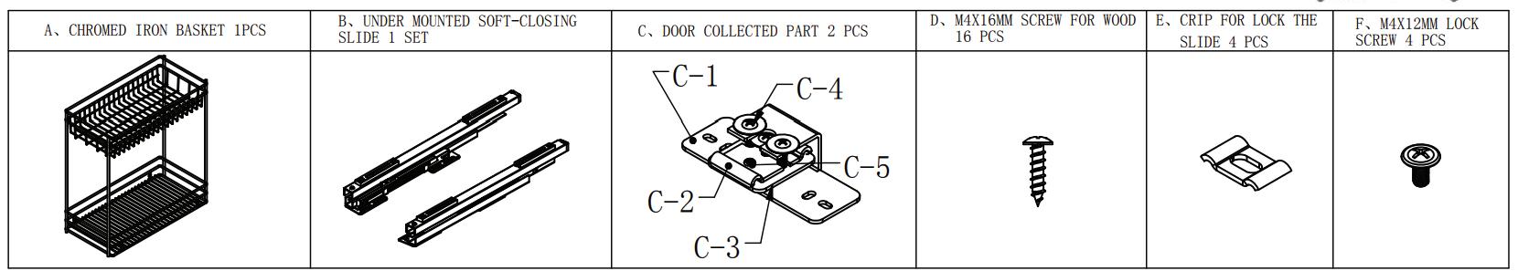 Canasta multiuso de 400mm Con riel cierre lento