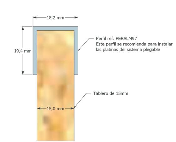 Nota: Para utilizar tablero de 15 mm de espesor es necesario utilizar el perfil remate PERALM97