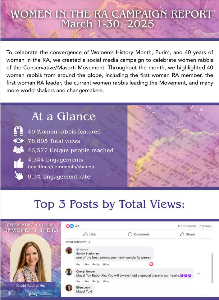 About three times a year, I was responsible for the design and execution of graphics for all social campaigns. Notably our most successful one, highlighting Female Rabbis, reached 46,577 unique people.