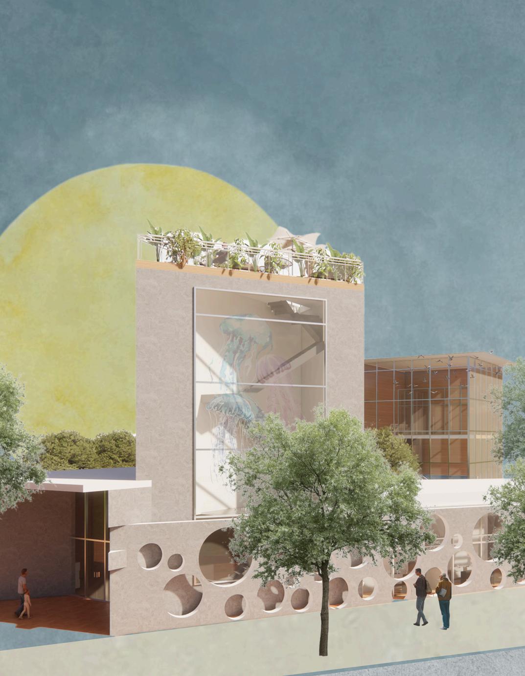 nnovative structure addresses multiple comfort factors simultaneously: strategically placed blue flower forms provide targeted solar protection while preserving visibility, integrated light shelves redirect diffused daylight during Carmel's characteristic foggy periods, and carefully positioned openings channel natural air movement across the face This experimental prototype explores the potential for small-scale, body-centered climate adaptation that harmonizes with Carmel's natural beauty, demonstrating how passive design principles can be applied at the most intimate human scale